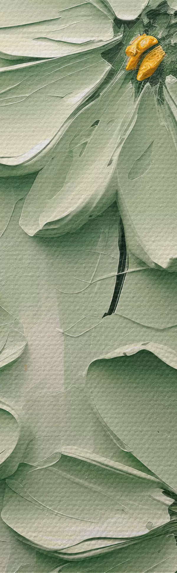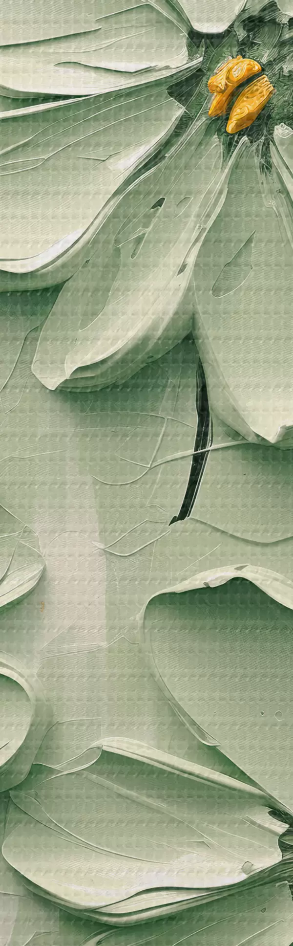 Kép Zöld virágok sárga központok festett sűrű ecsetvonásokkal világos háttéren Nr r45265