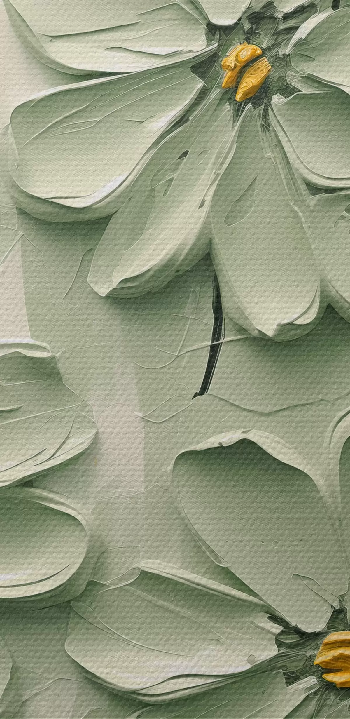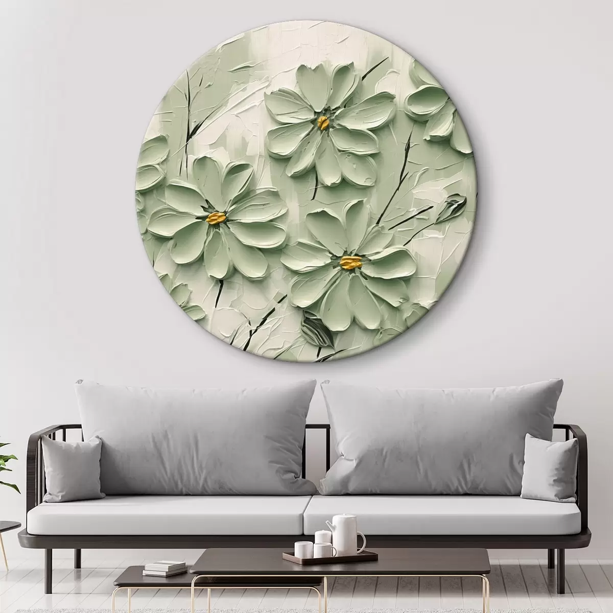 Kép Zöld virágok sárga központok festett sűrű ecsetvonásokkal világos háttéren Nr r45265