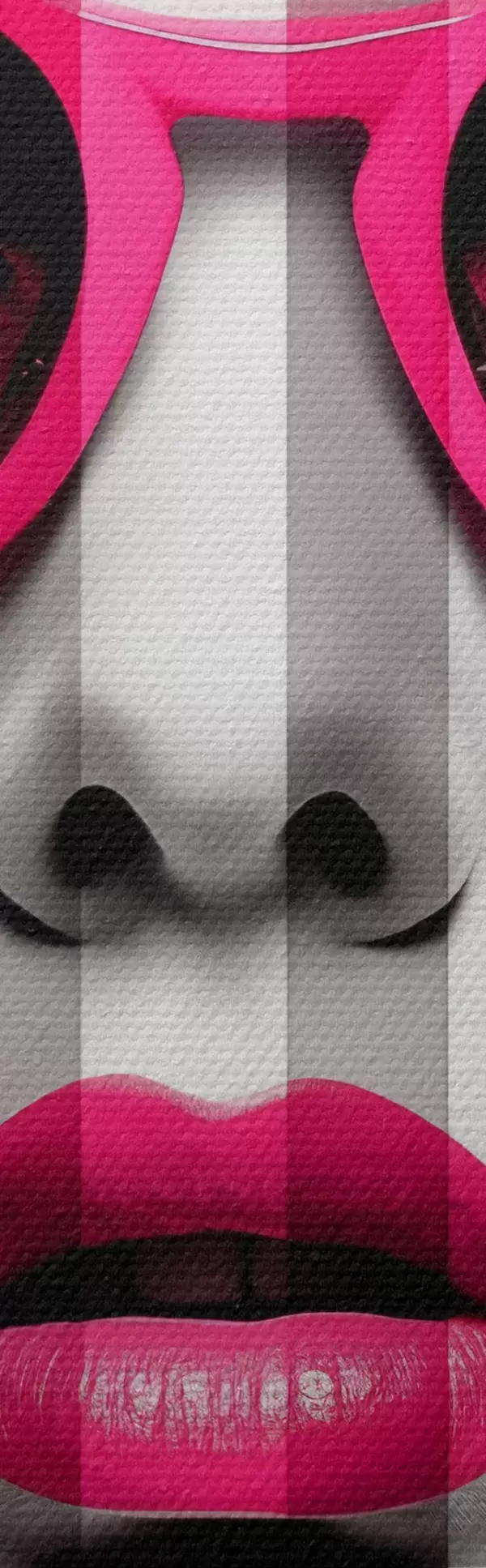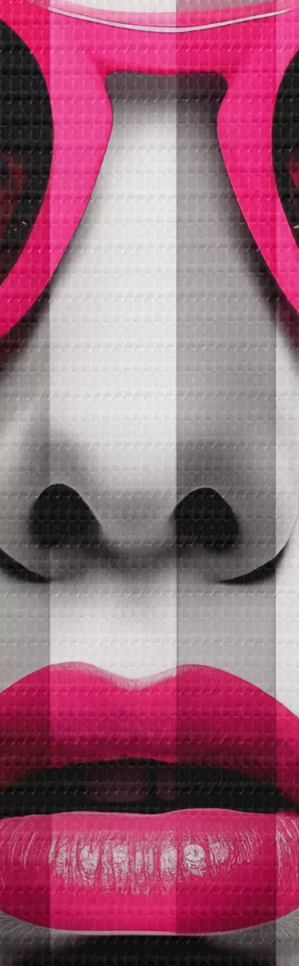 Kép Fekete-fehér csíkos rózsaszín szemüveget viselő nő Nr r45315