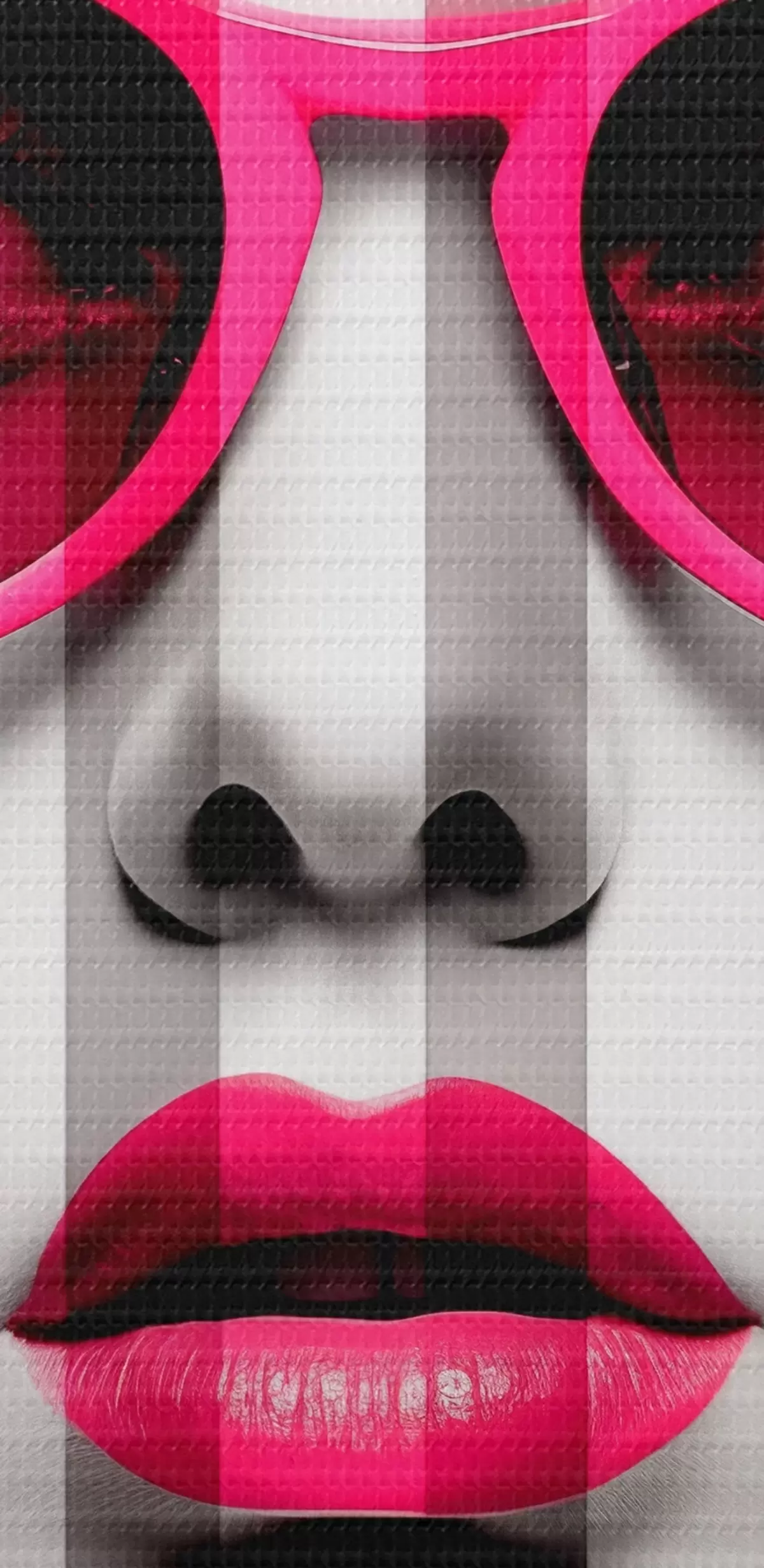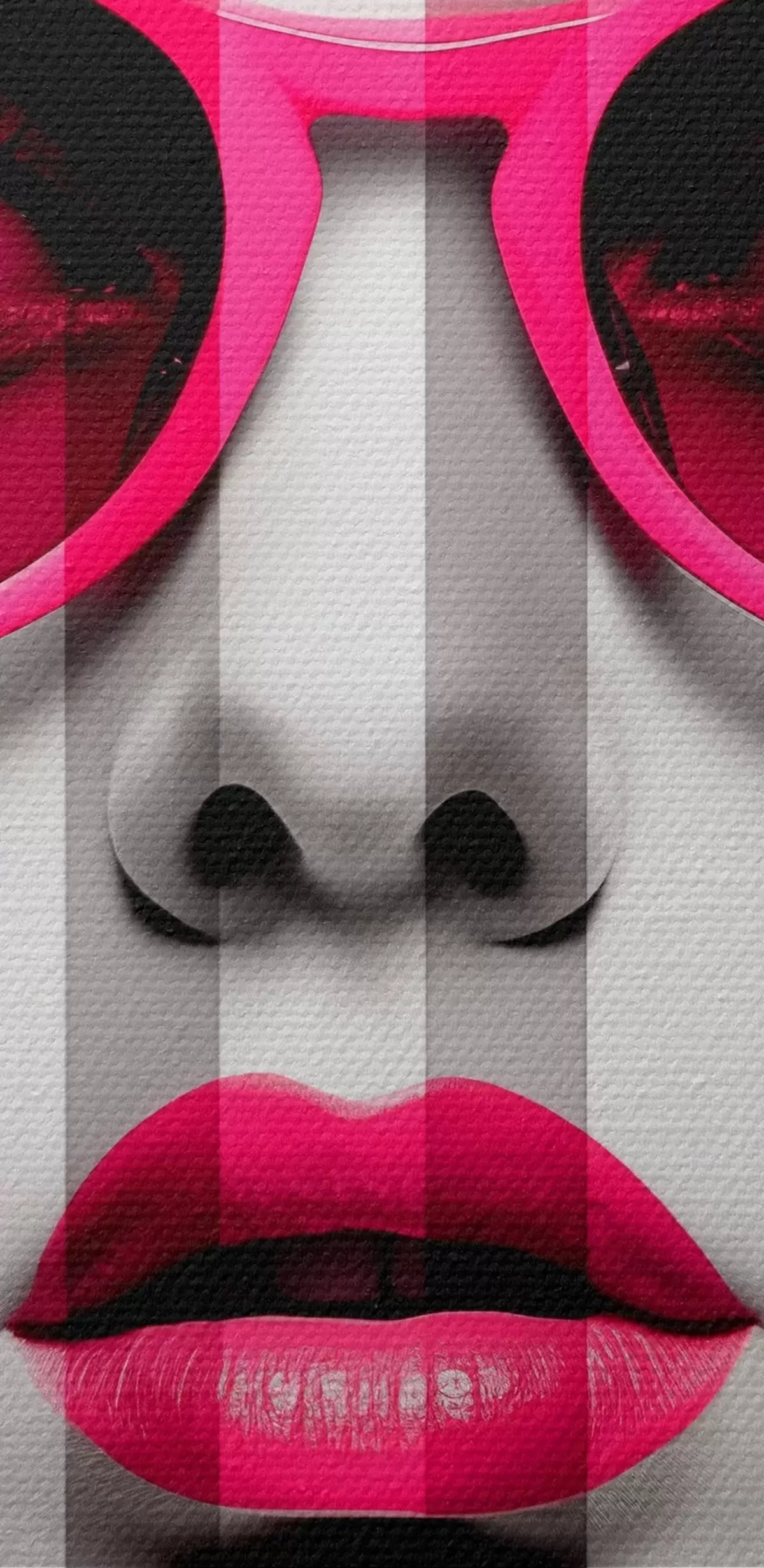 Kép Fekete-fehér csíkos rózsaszín szemüveget viselő nő Nr r45315