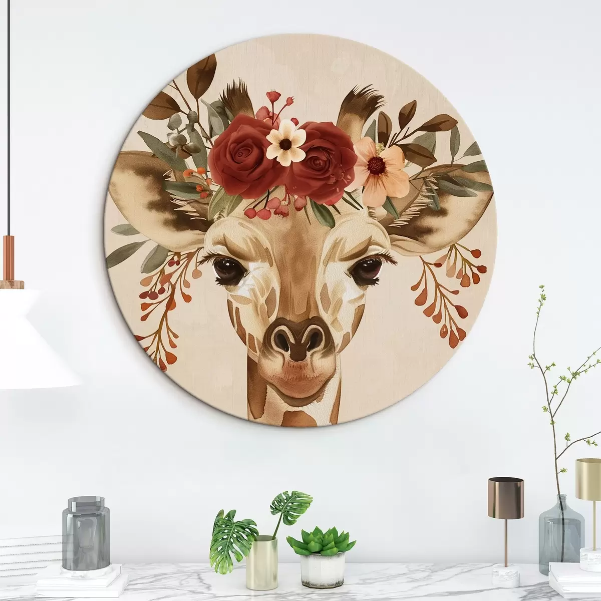 Kép Zsiráf akvarell stílusban, virágokkal a fején Nr r45331