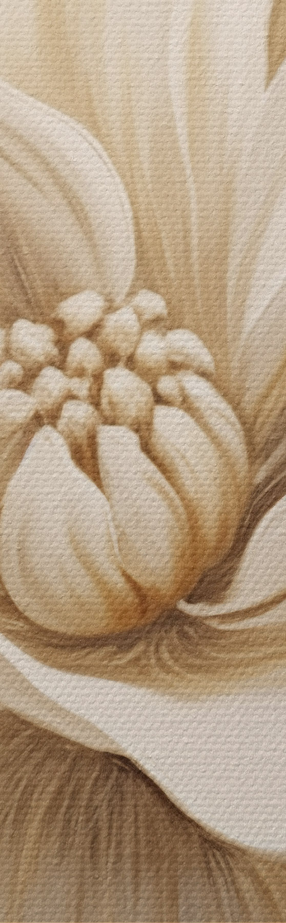 Ahhoz, hogy a vásznat a feszítőrúdra feszítsük anélkül, hogy a kép megsérülne, tükrözött képet használunk.