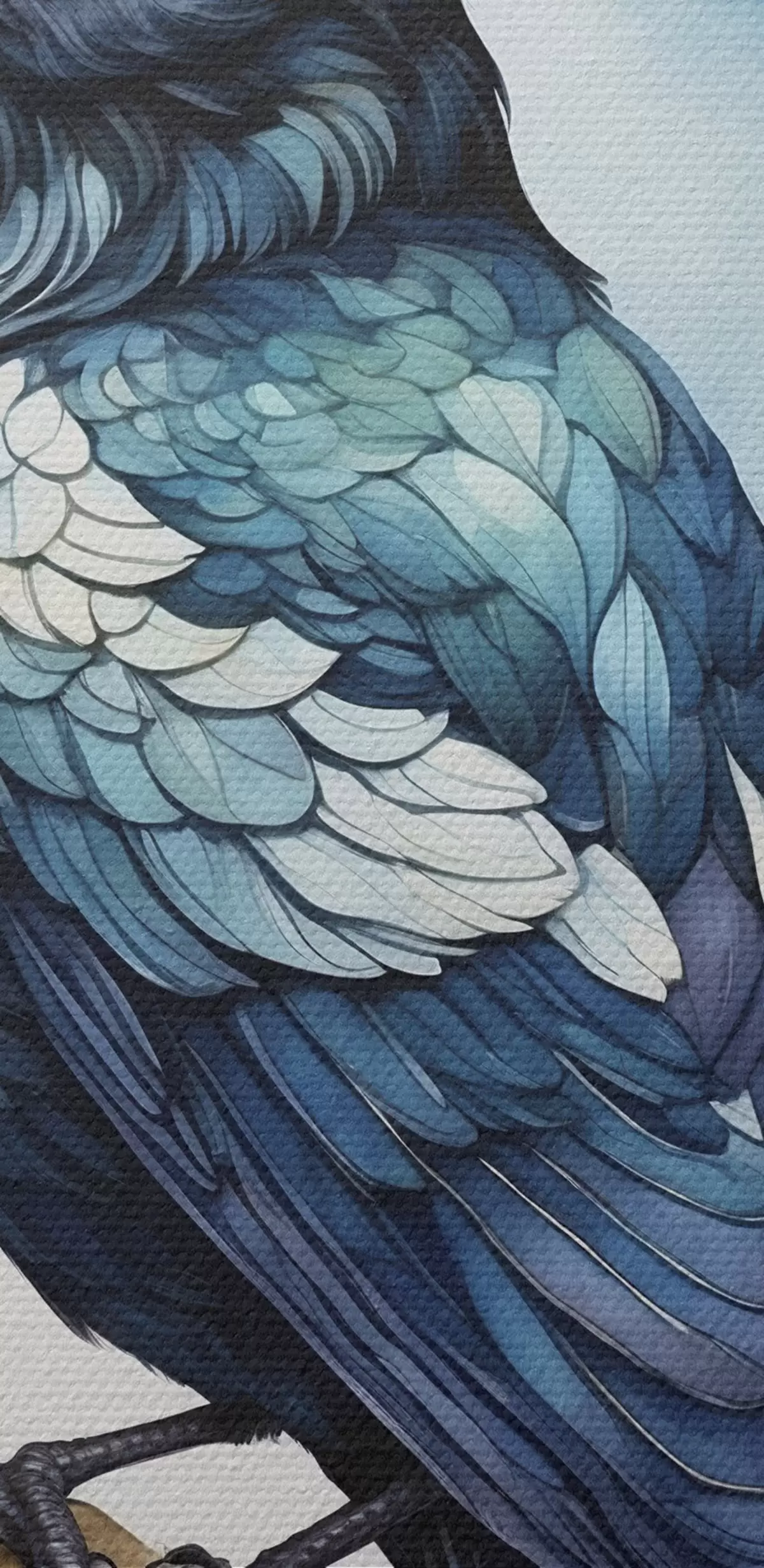 Kép Kék madár egy ágon akvarell stílusú levelekkel Nr r45483