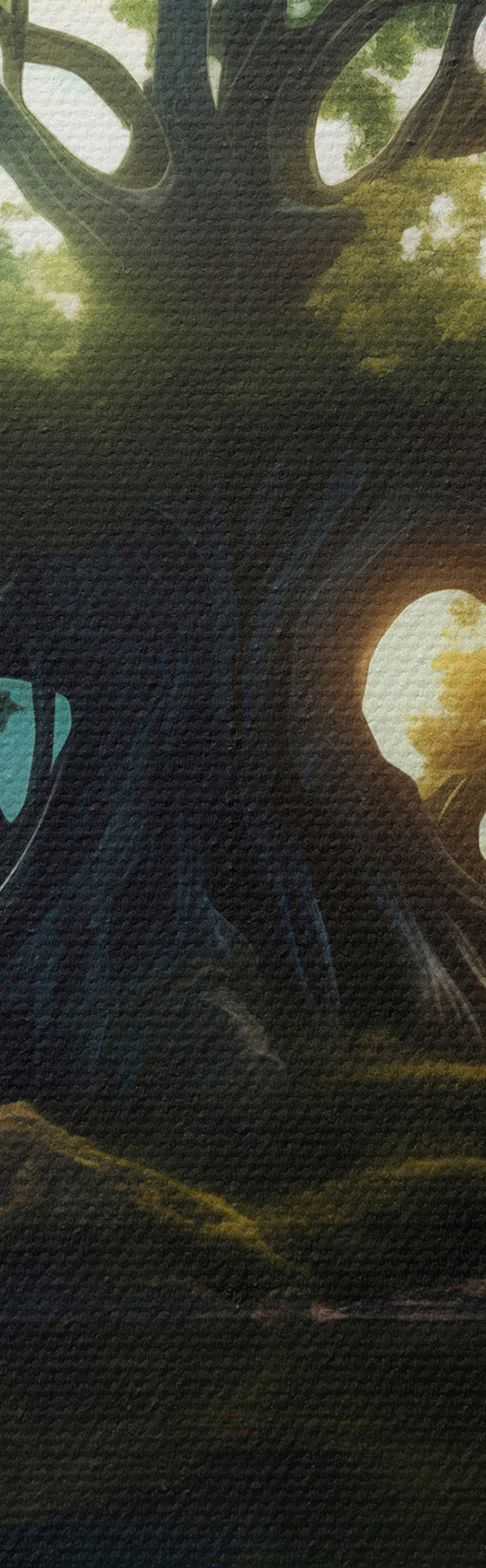 Ahhoz, hogy a vásznat a feszítőrúdra feszítsük anélkül, hogy a kép megsérülne, tükrözött képet használunk.