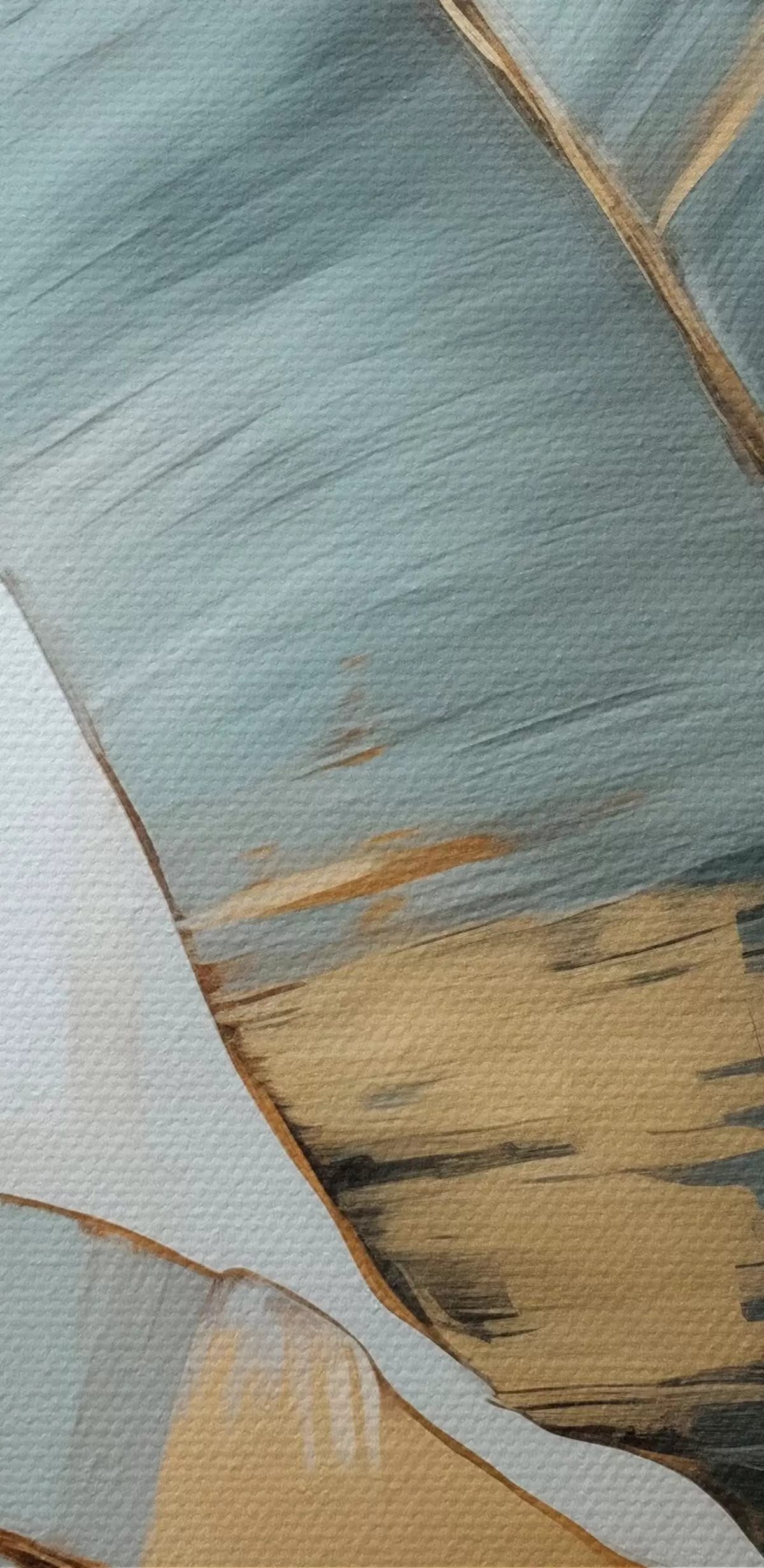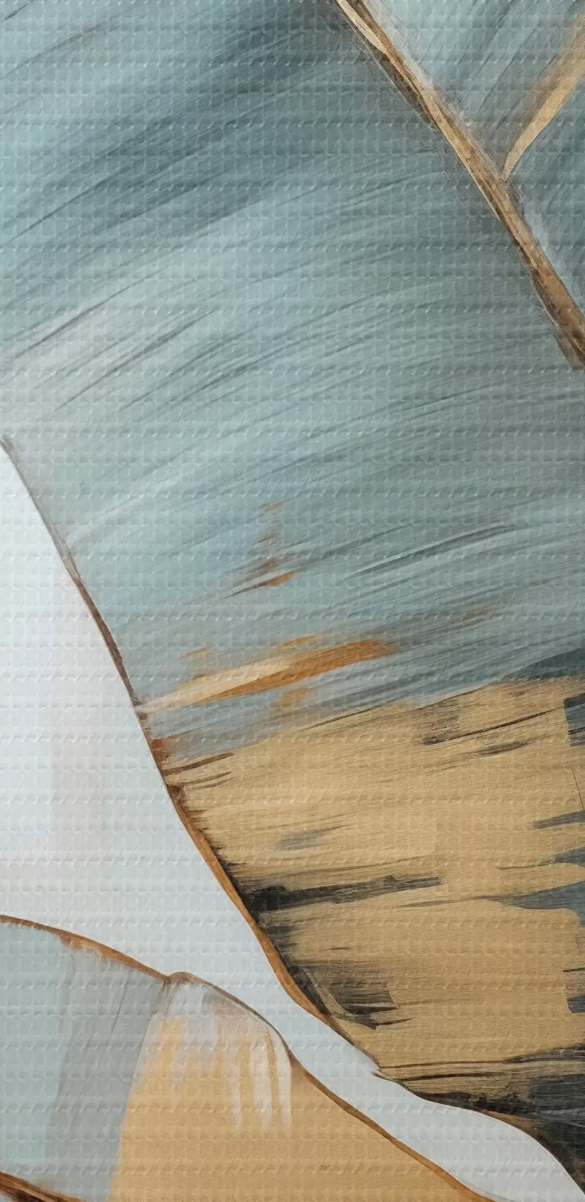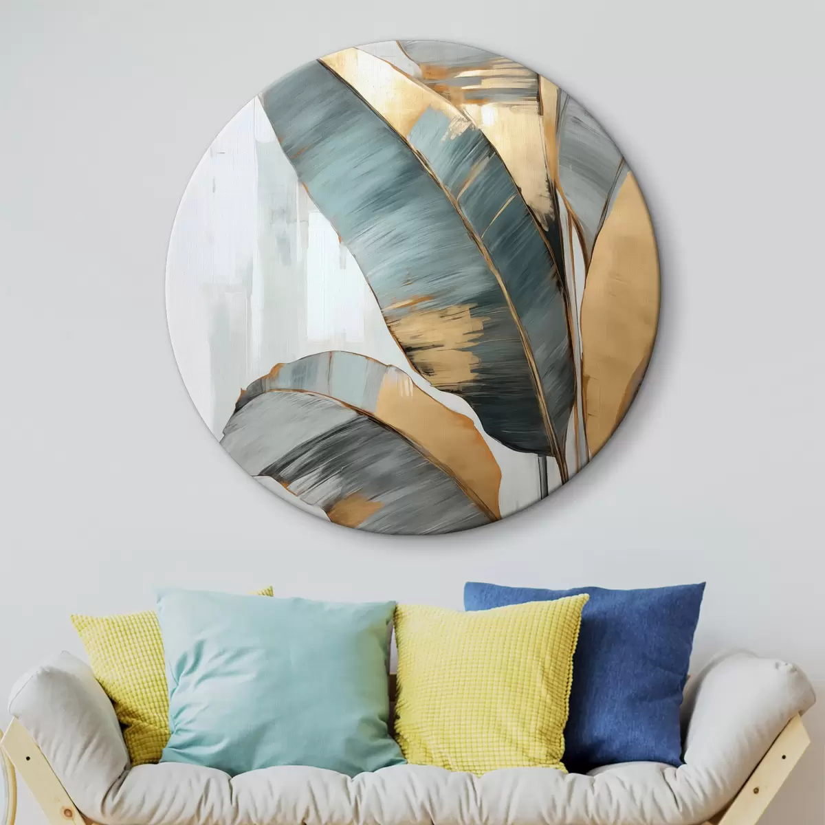 Kép Tompított kék, szürke és sárga banánlevelek halmaza látható ecsetvonásokkal, fehér absztrakt háttérben Nr r45551