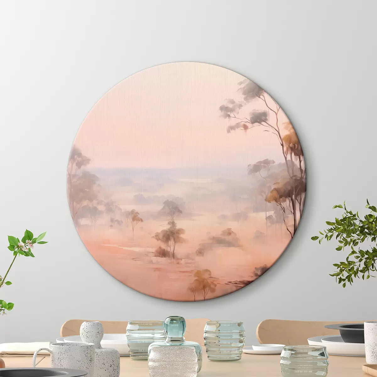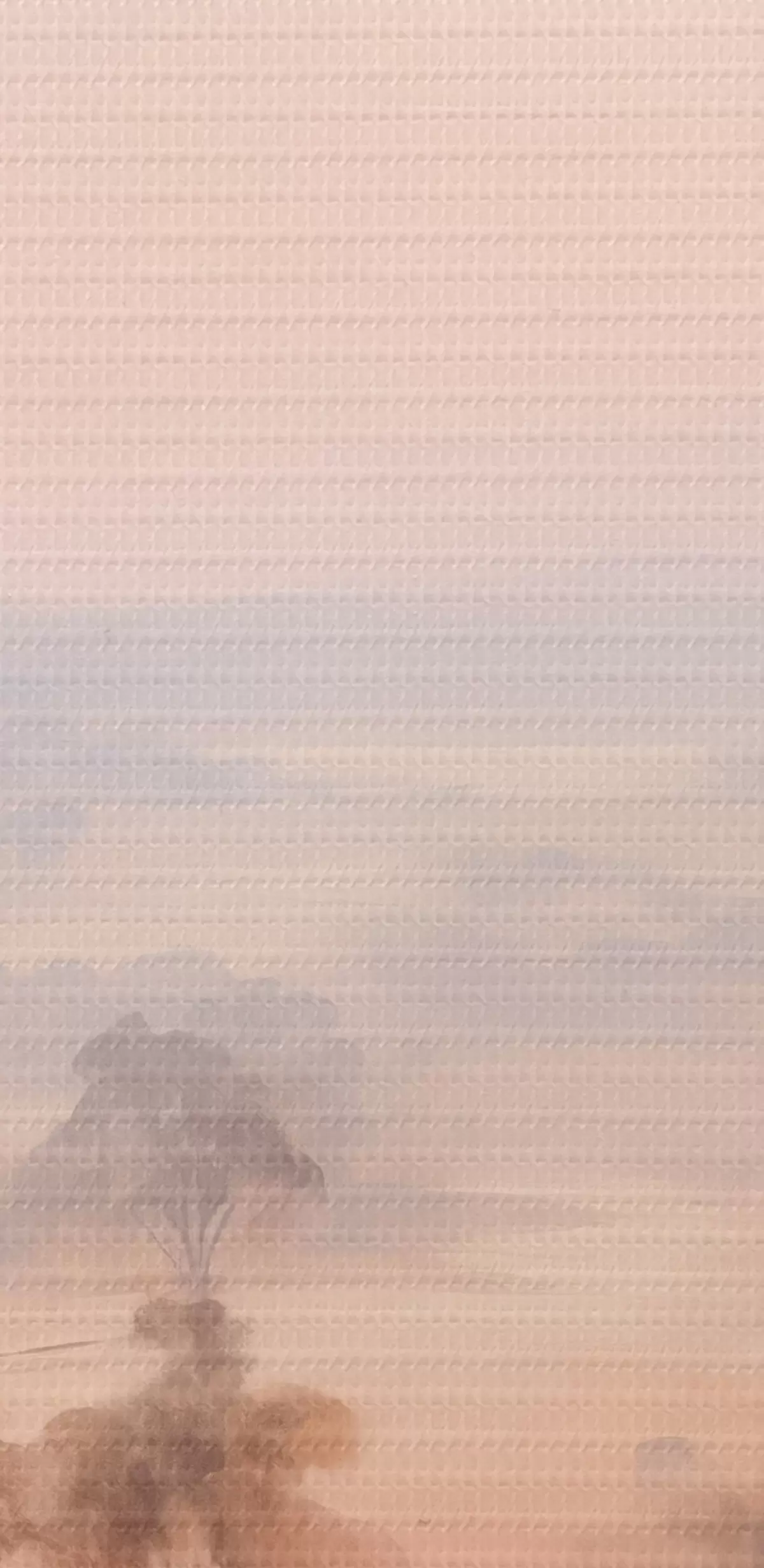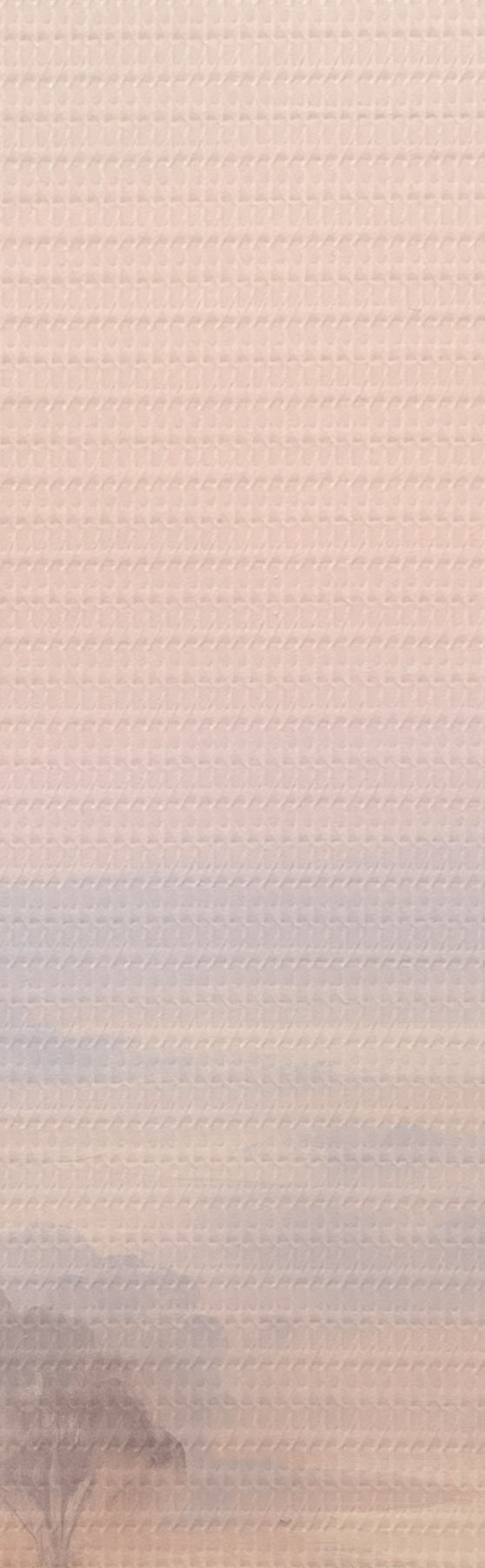 Kép Tájkép bokrokkal és fákkal a rózsaszín , narancs és barna pasztell árnyalataiban, a háttérben hegyekkel Nr r45554