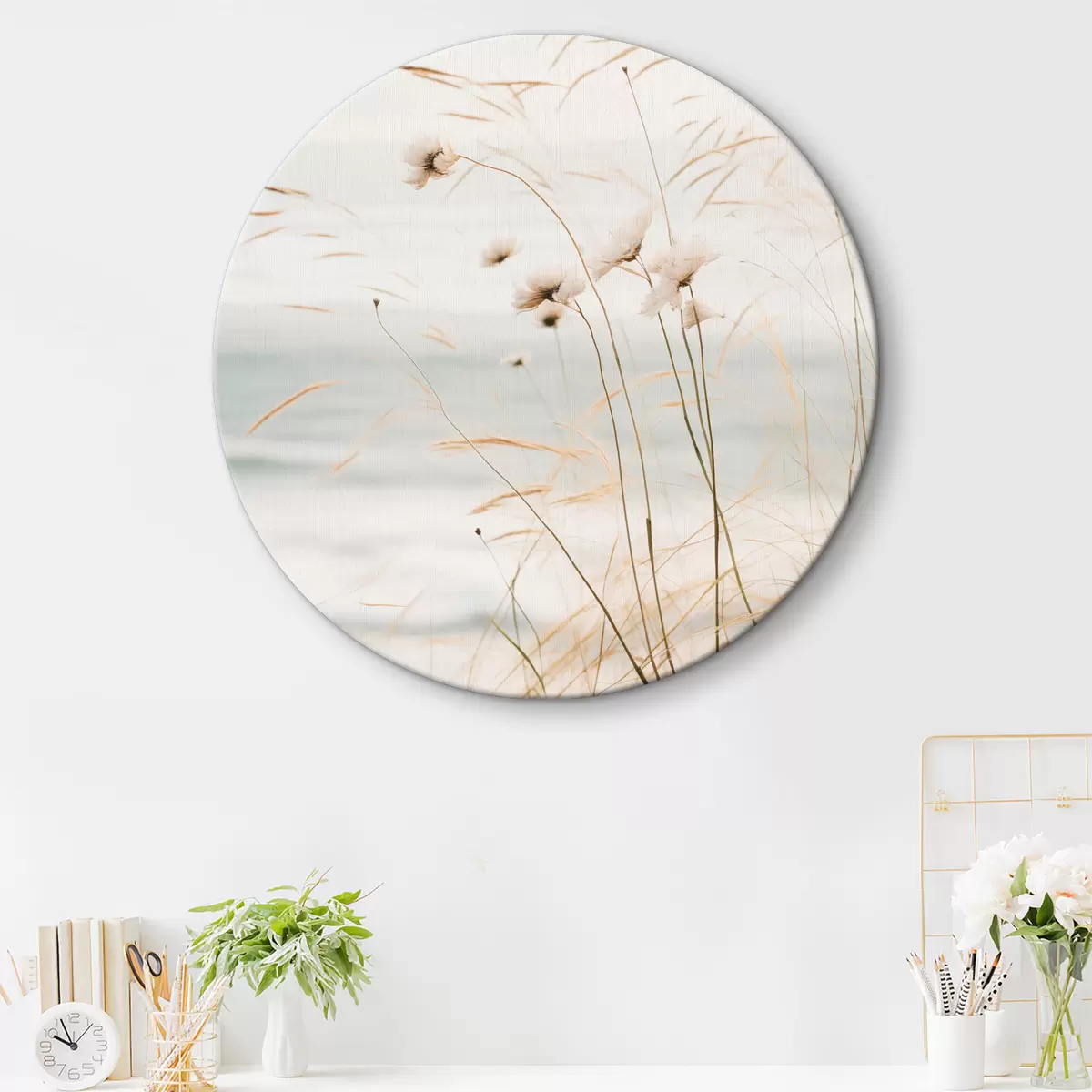 Kép Néhány pamutfű és más száraz fű egy elmosódott tenger előtt, lágy és tompa színpaletta Nr r45562