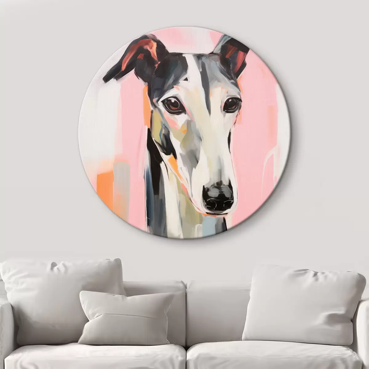 Kép Egy agár rózsaszín, narancssárga és fehér ecsetvonások hátterében Nr r45566