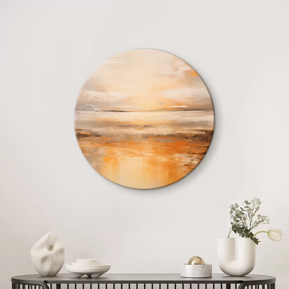 Kép Absztrakt festmény egy tengerparti tájkép nyugodt óceánnal, narancssárga homokkal és felhős égbolt napfényben Nr r45567