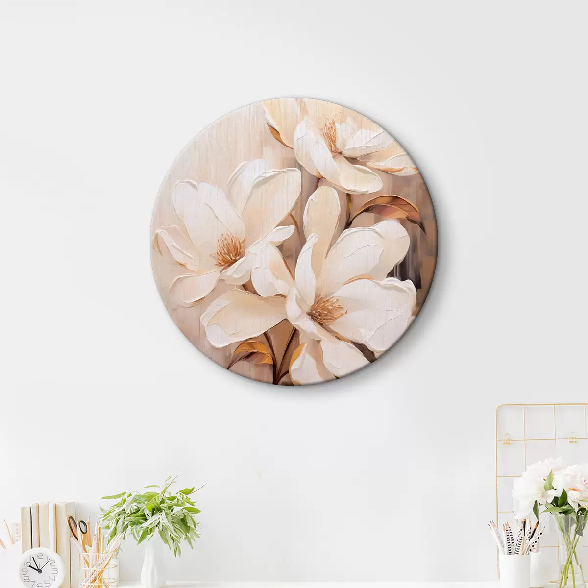 Kép Fehér magnólia virágok lágy, elmosódott bézs és barna tónusú háttér előtt, elegáns virágkompozíció Nr r45571