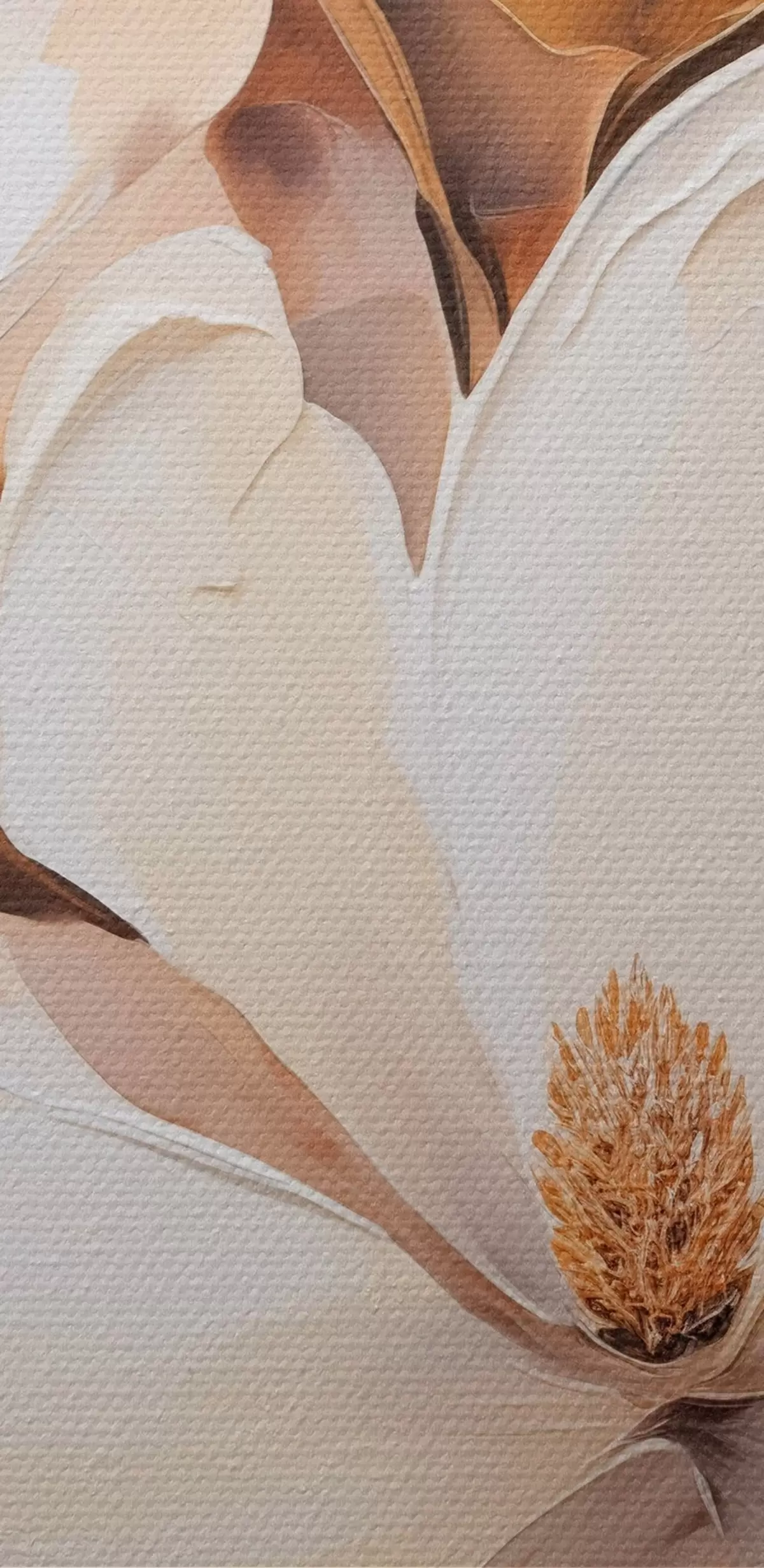 Kép Fehér magnólia virágok lágy, elmosódott háttér előtt, bézs és barna tónusok, festmény stílusban Nr r45572