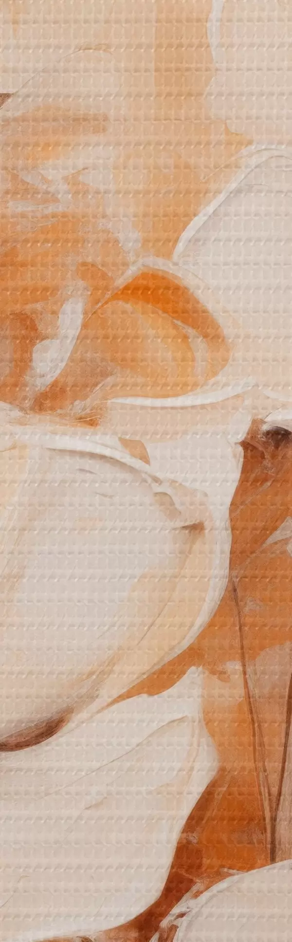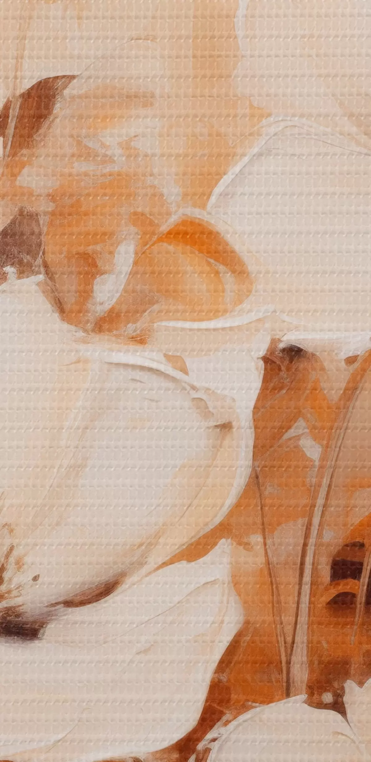 Kép Fehér virágok narancssárga levelekkel, finom ecsetvonások, meleg színpaletta, elegáns kompozíció Nr r45573