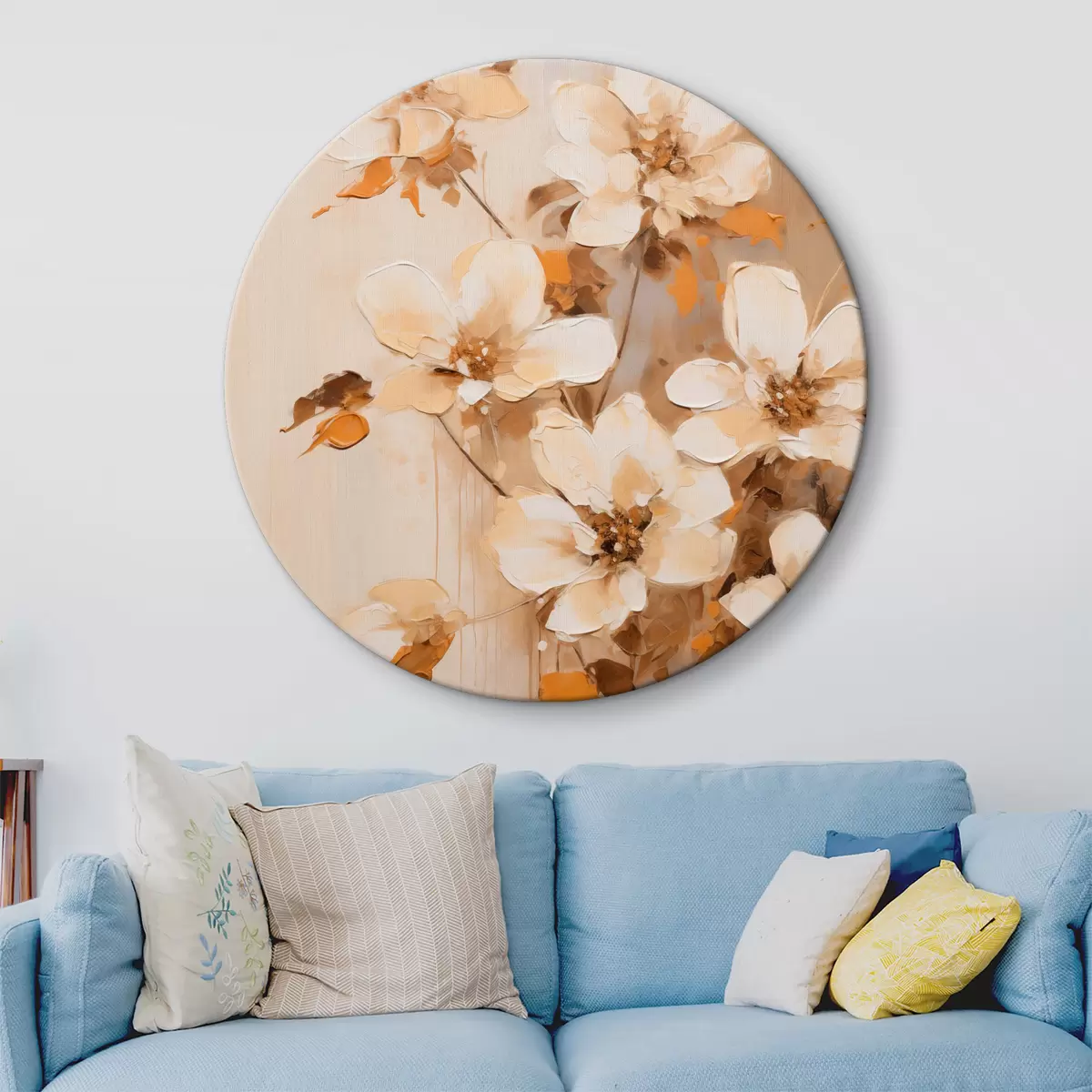 Kép Fehér virágok narancssárga levelekkel, finom ecsetvonások, virágkötészet, botanikai művészet Nr r45574