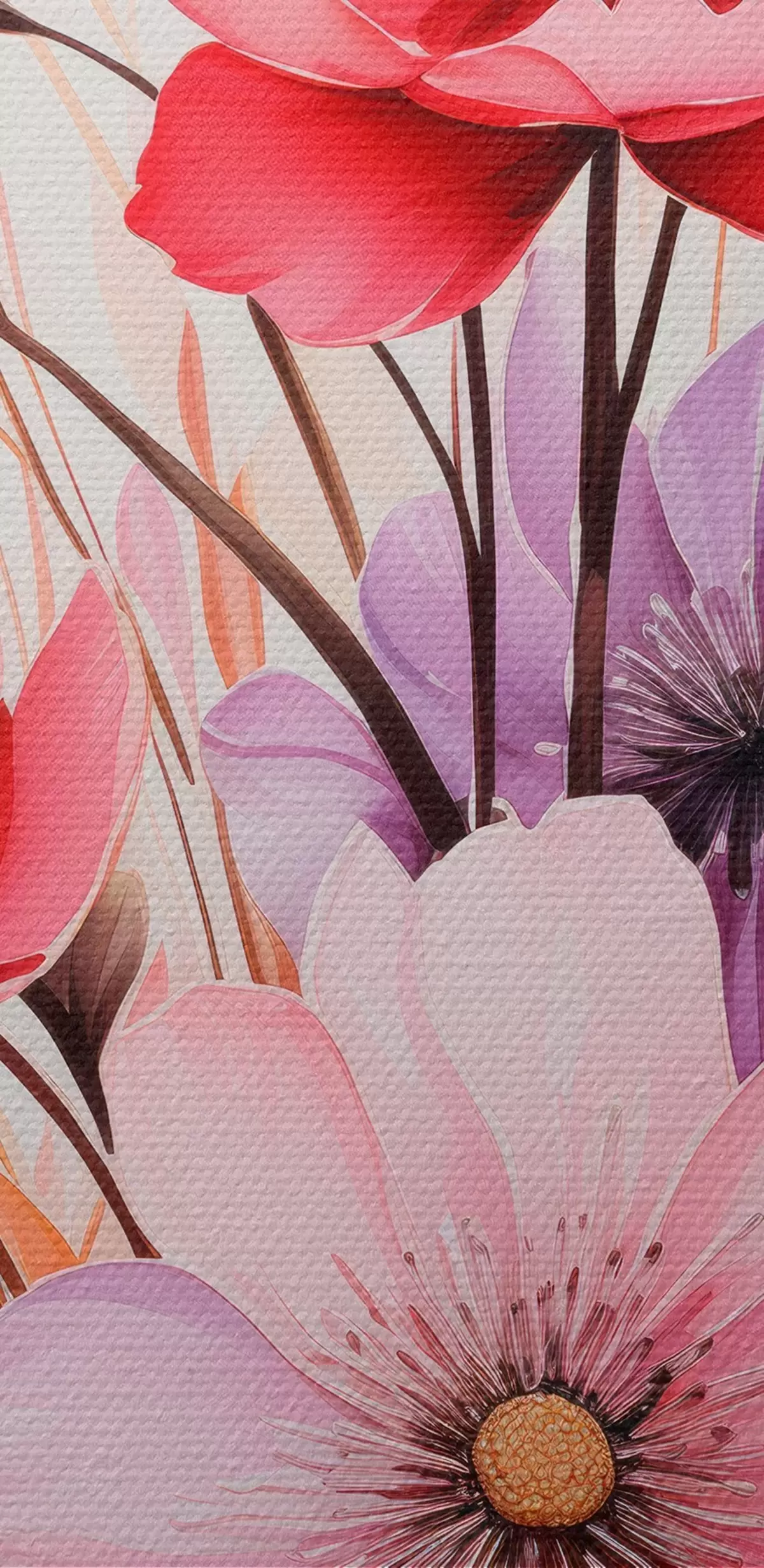 Kép Finom csokor rózsaszín és lila pipacsok világos háttéren, akvarell stílusban Nr r45601
