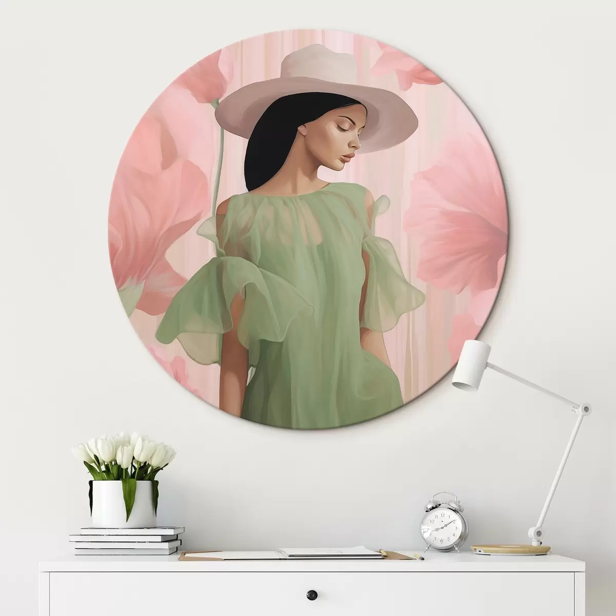 Kerek festmények Lány kalapban virágok között r45678
