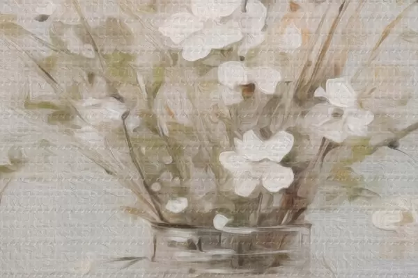 Kerek festmények Fehér virágcsokor átlátszó üvegvázában r45814
