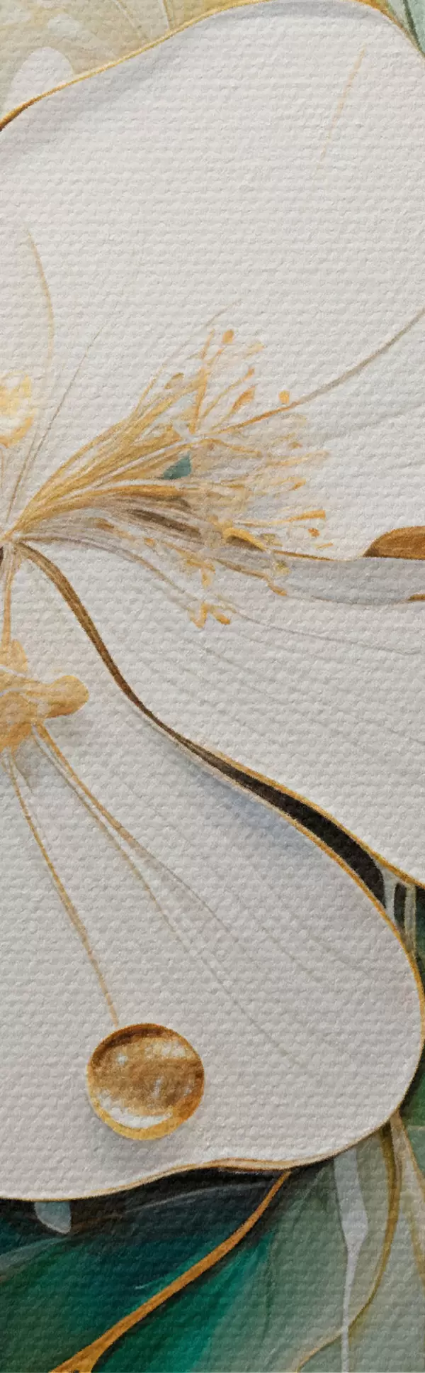 Kerek festmények Fehér virág sárga-narancssárga részletekkel és zöld levelekkel r45815