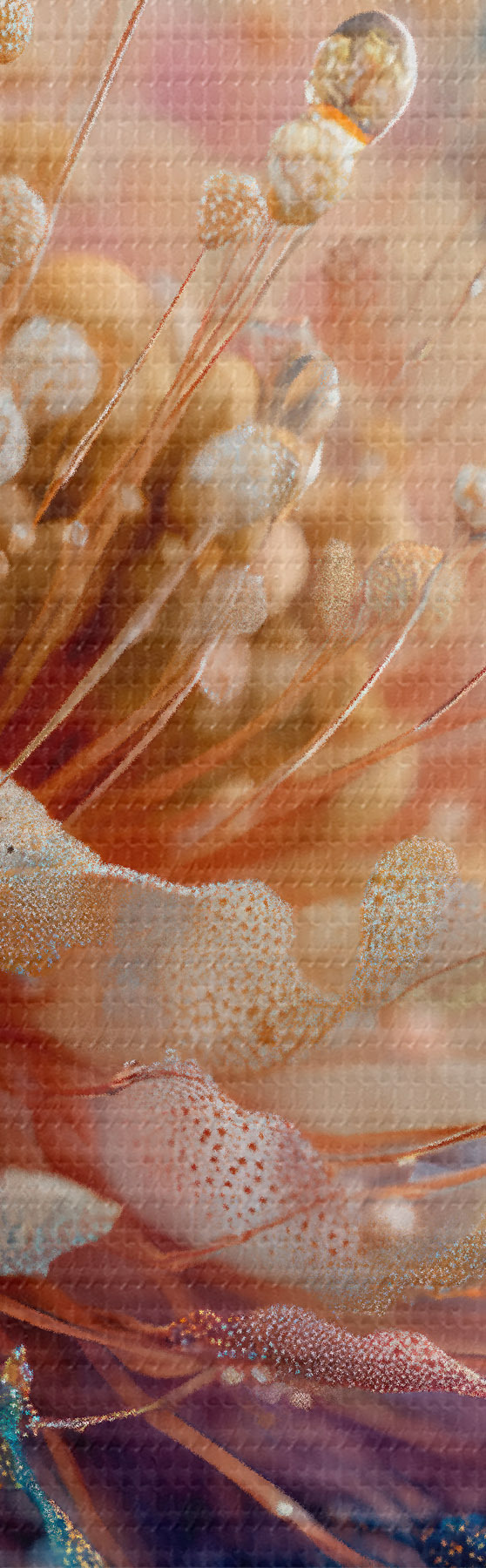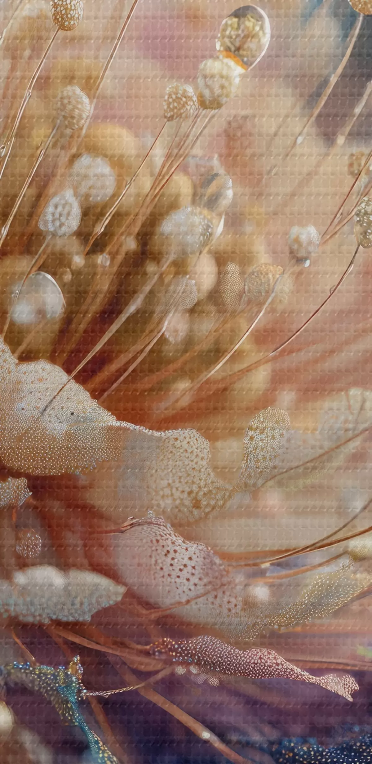Kép Gyöngyházfényű virág harmatcseppekkel, barack- és kék színű szirmokkal Nr r45911