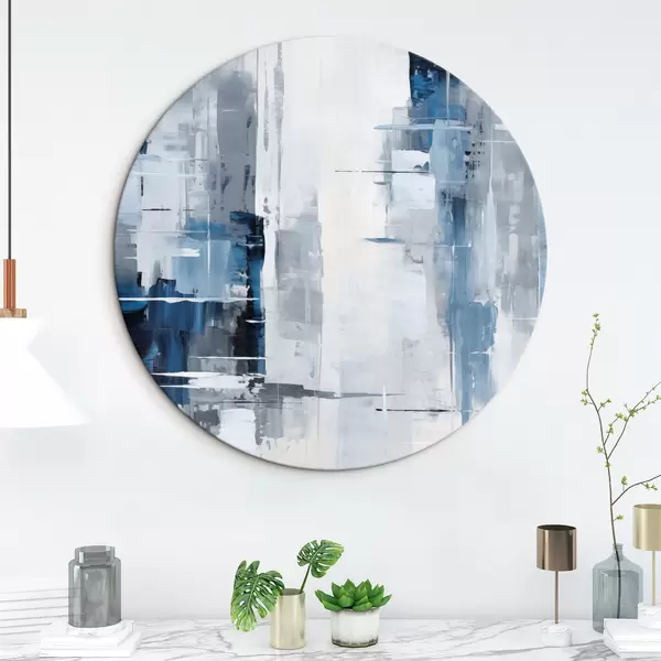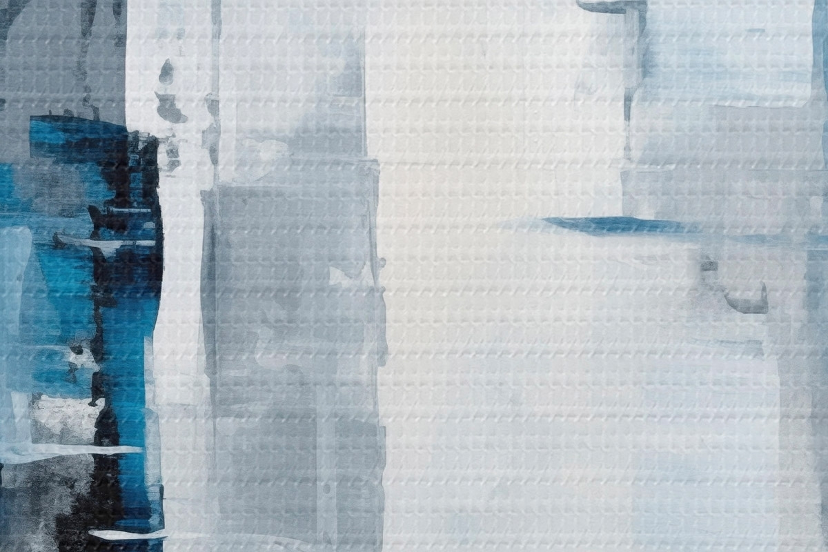 Kép Absztrakt festmény utánzat kék, szürke és fehér színekkel, függőleges vonalakkal és geometriai alakzatokkal Nr r45926