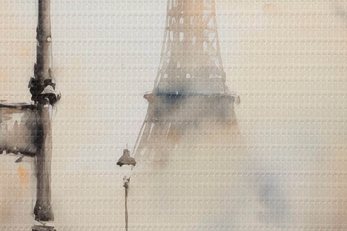 Kép Esős őszi nap Párizsban, az Eiffel-torony háttérben és vintage utcai lámpákkal Nr r45931