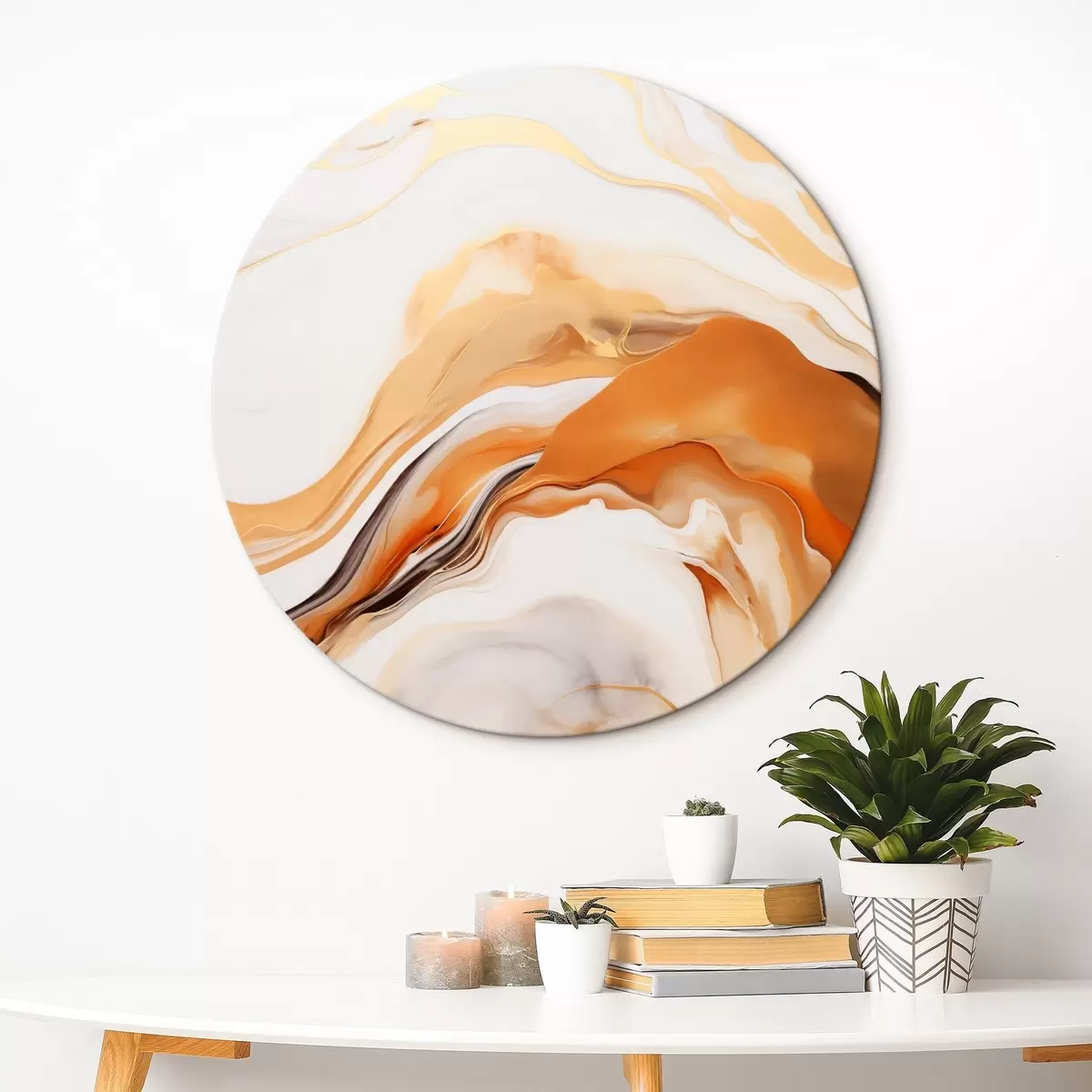 Kép Absztrakt festmény utánzat folyékony formákkal, fehér, narancssárga és barna árnyalatokban, minimalista stílusban Nr r45938