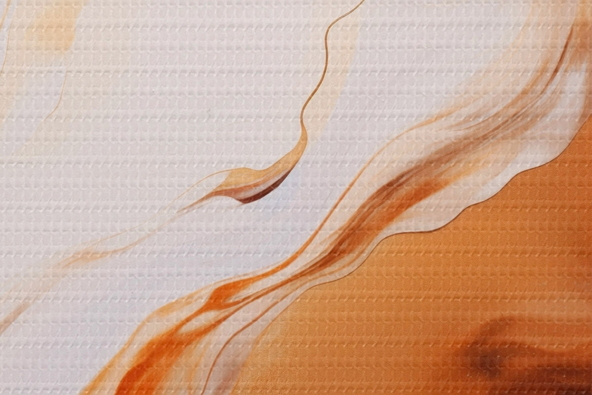 Kép Absztrakt festmény utánzat fehér és narancssárga színekkel, hullámzó vonalakkal, modern művészet Nr r45939