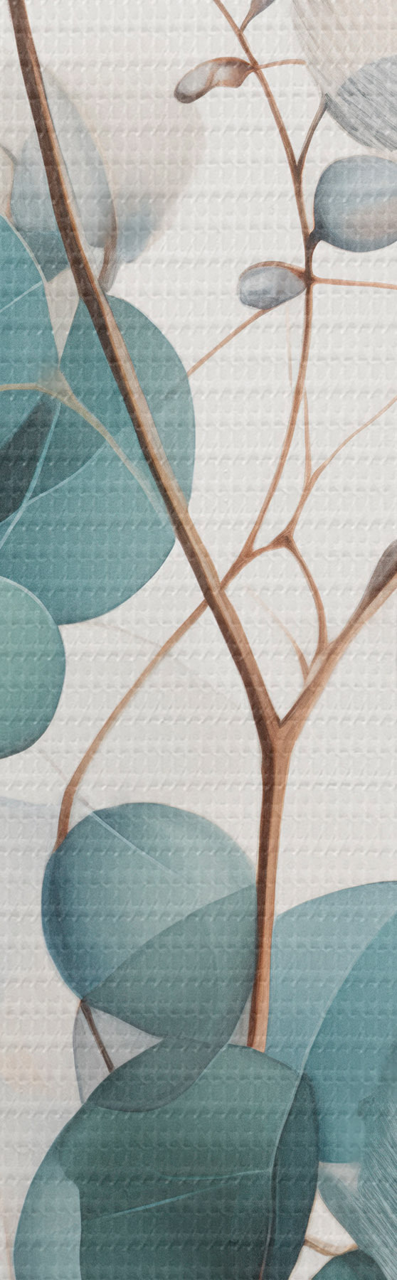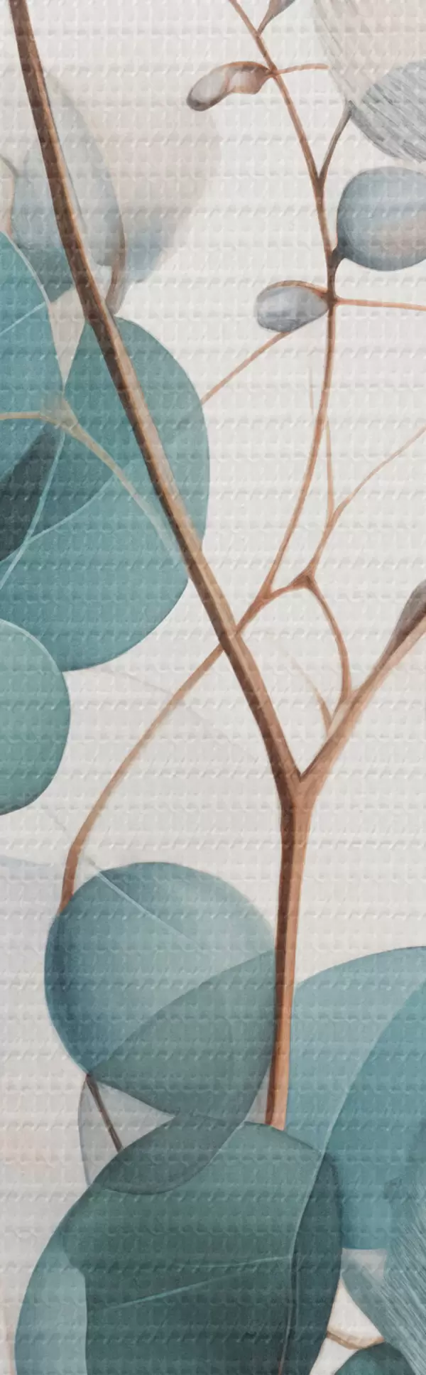 Kép Eukaliptusz absztrakt virágok fehér szirmokkal, halványzöld levelekkel az ágakon Nr r45946