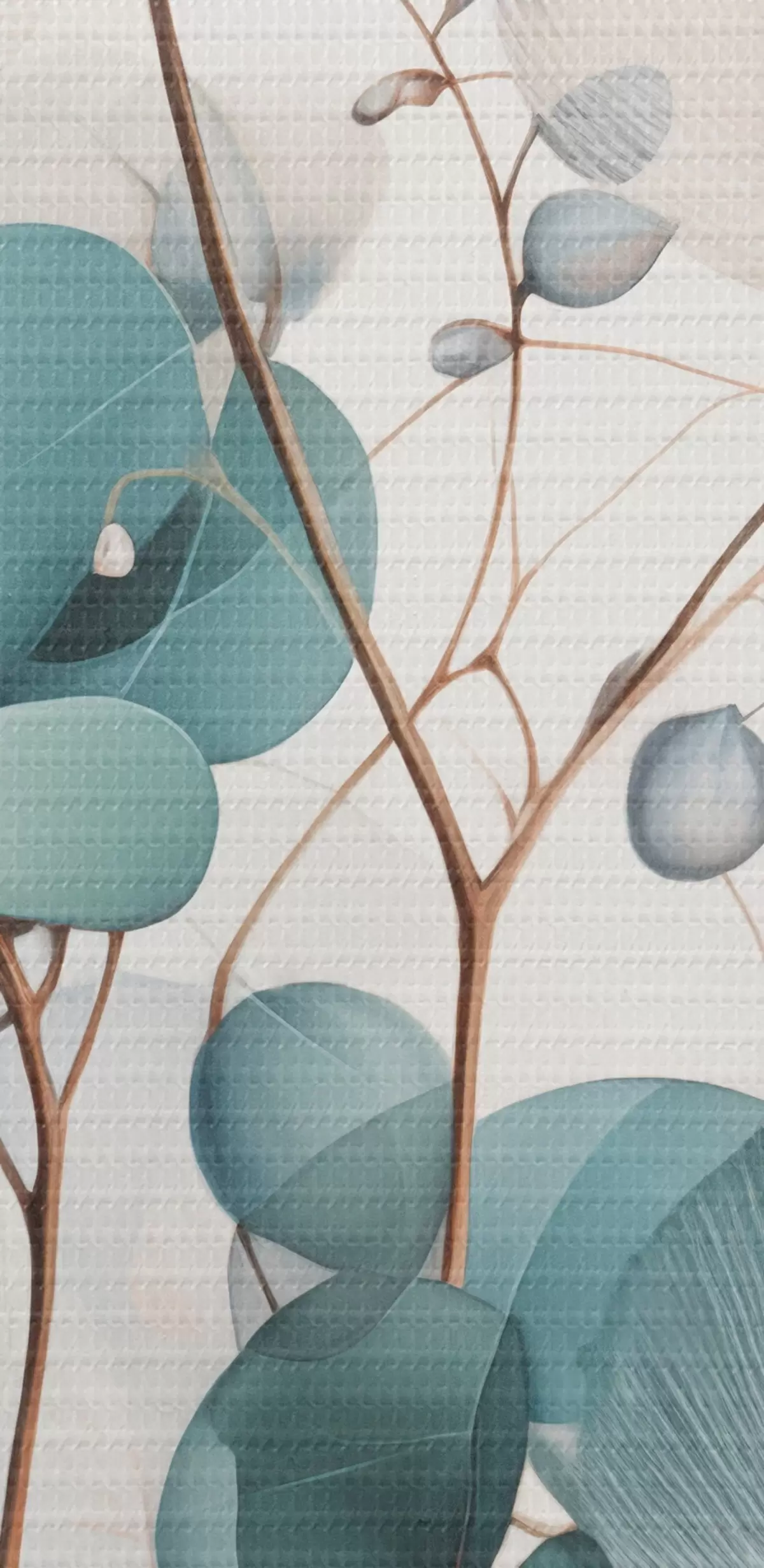 Kép Eukaliptusz absztrakt virágok fehér szirmokkal, halványzöld levelekkel az ágakon Nr r45946