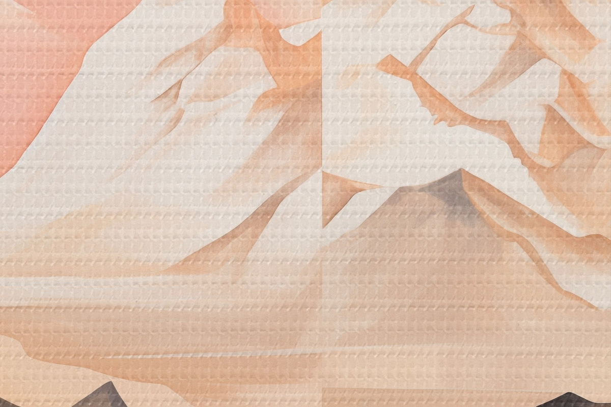 Kép Absztrakt táj hegyekkel és tóval, pasztell színekkel, minimalista stílusban Nr r45948