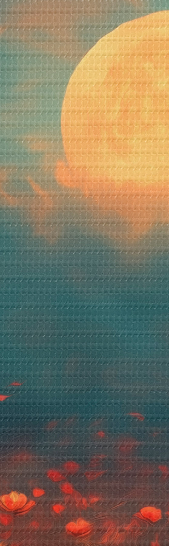 Kép Hold a ködös esti égbolton, vörös virágok mezője felett Nr r46167