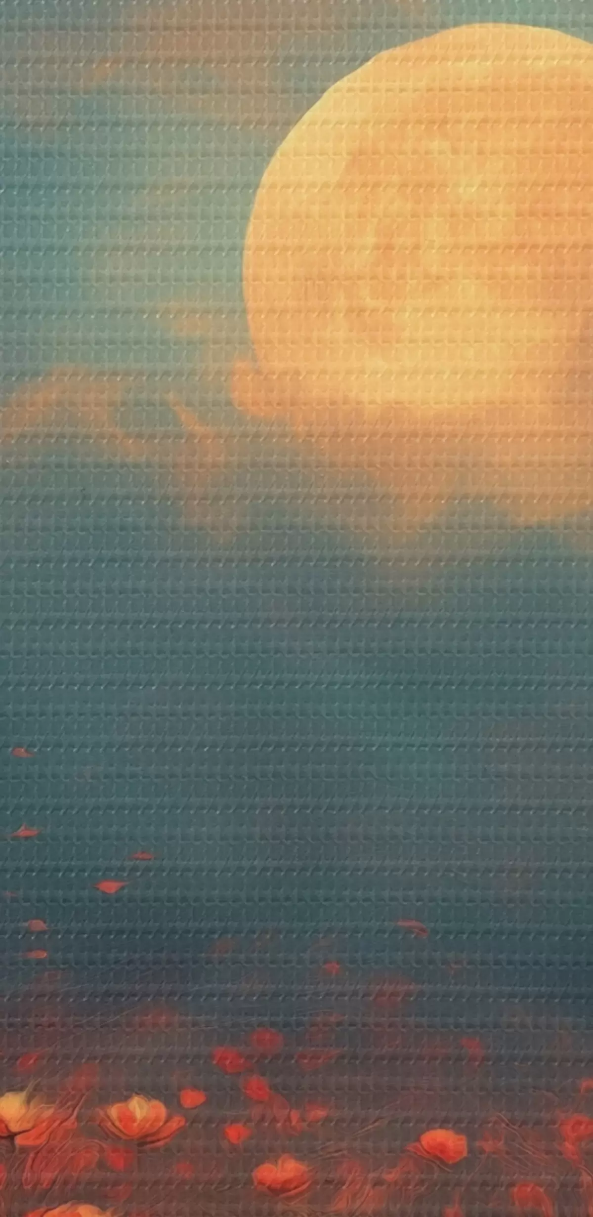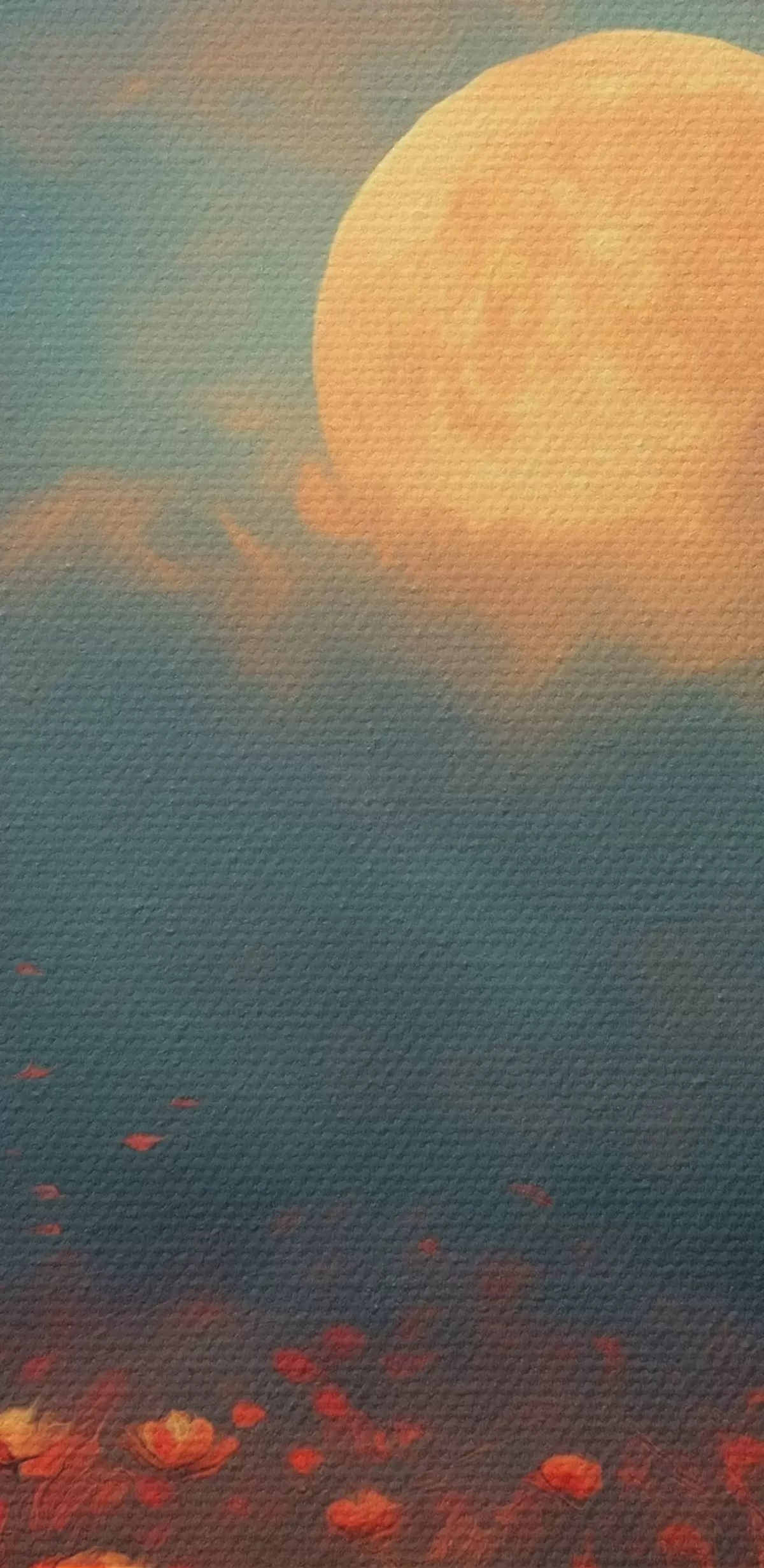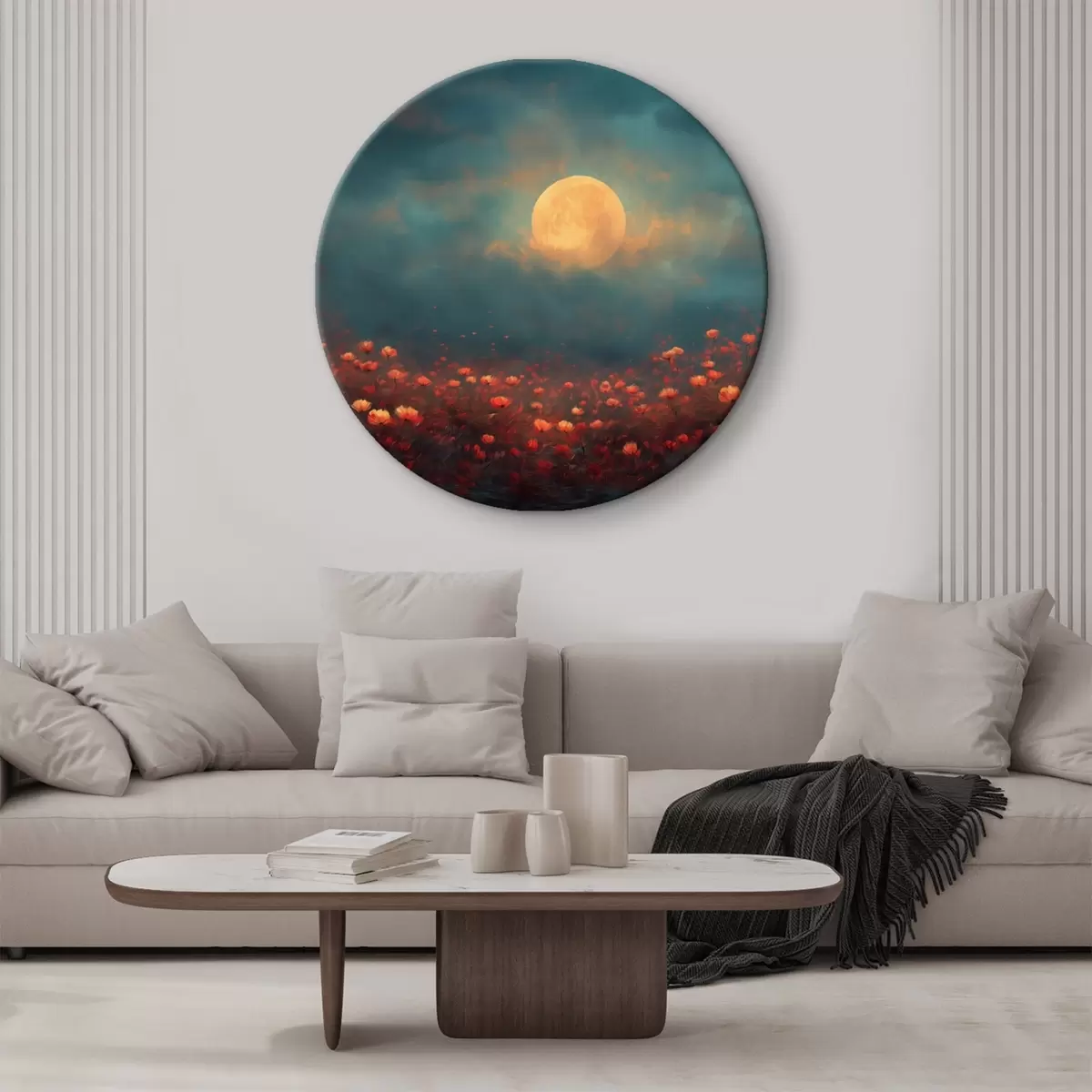 Kép Hold a ködös esti égbolton, vörös virágok mezője felett Nr r46167
