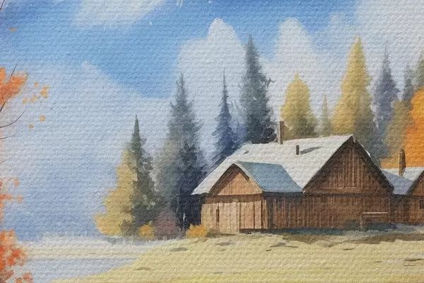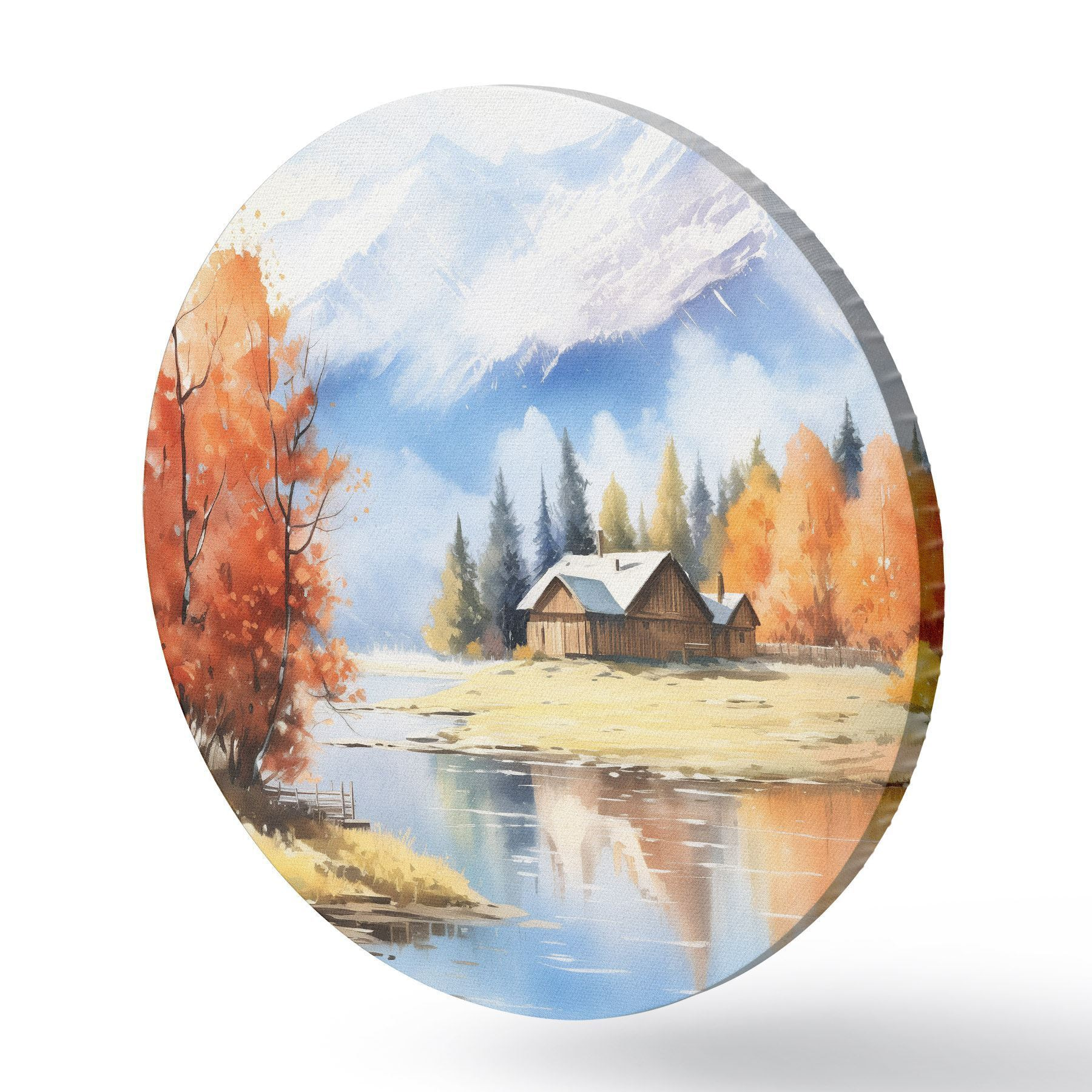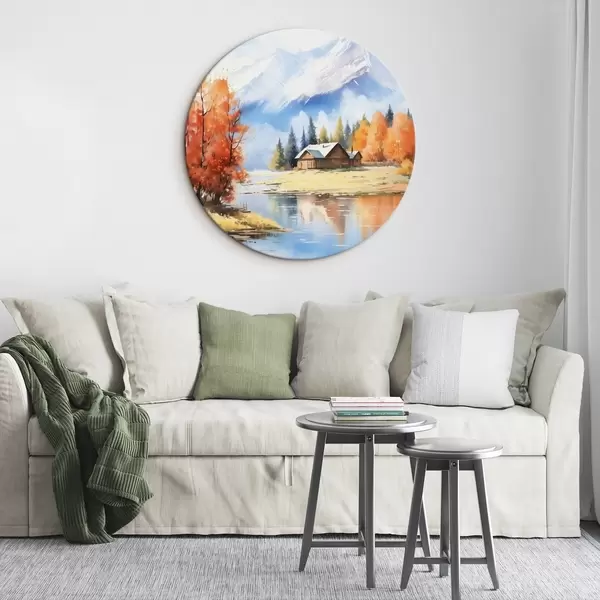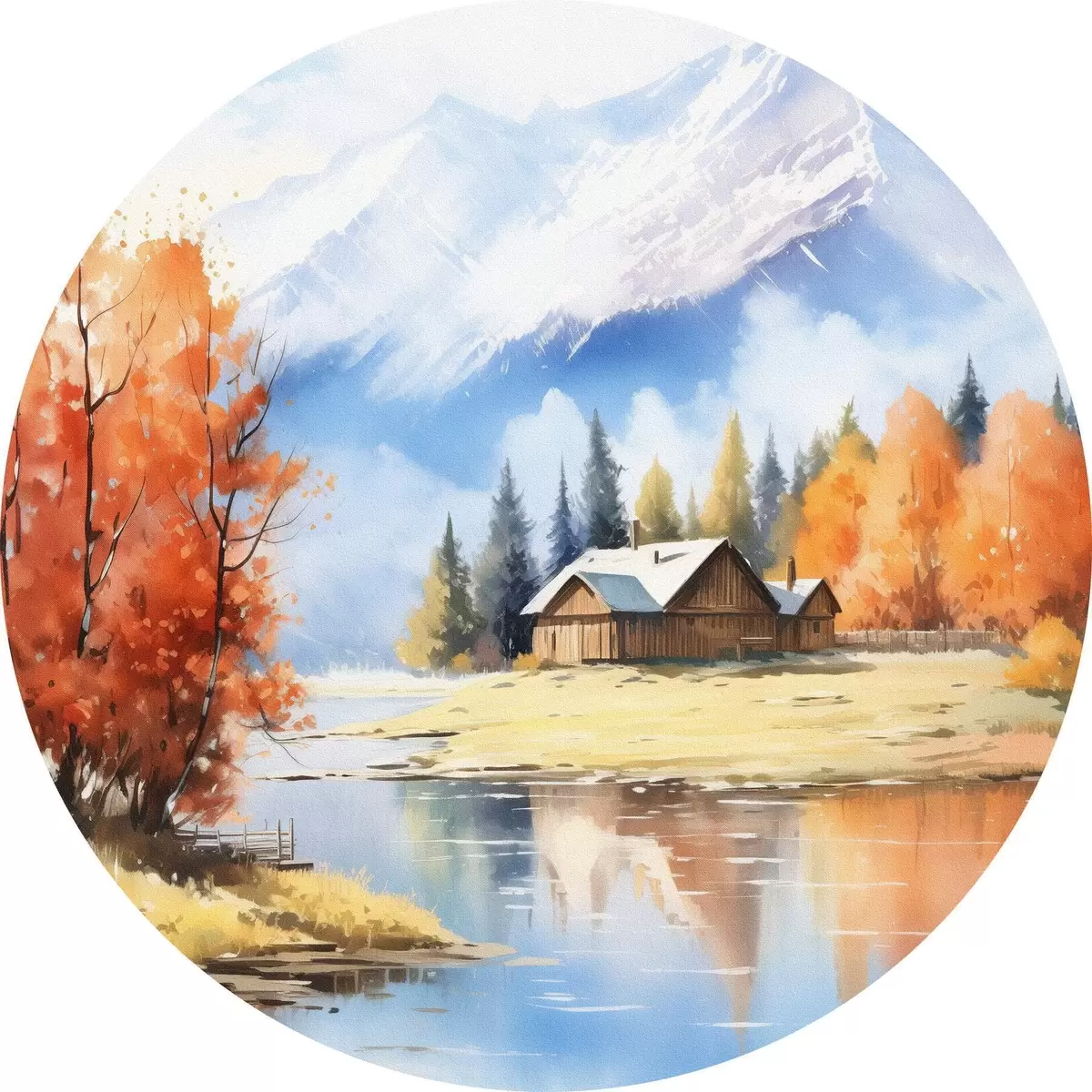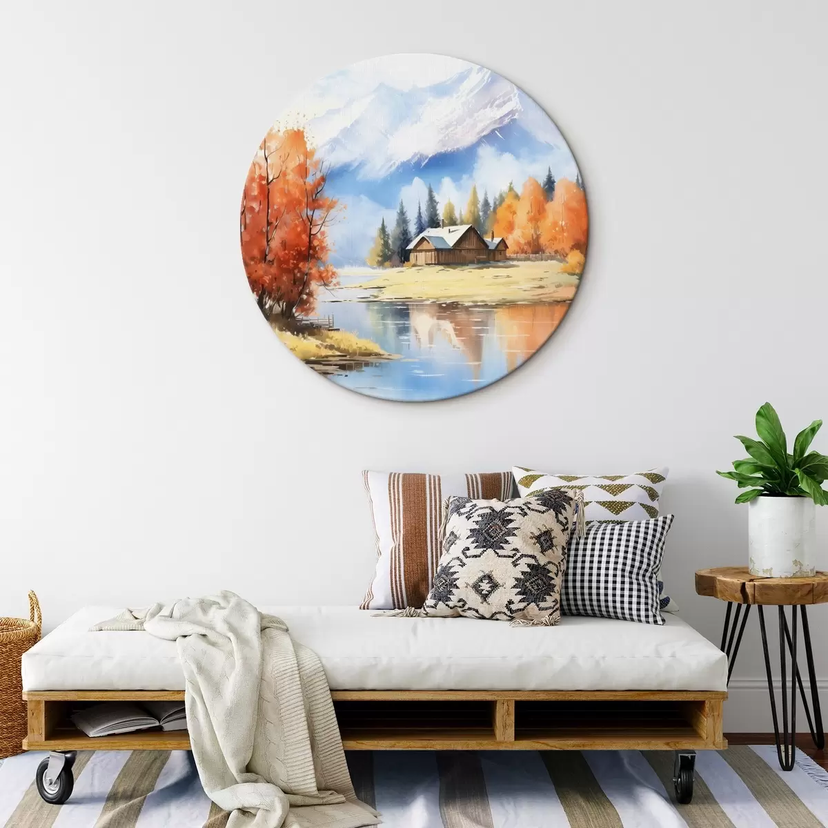 Kép Őszi táj a tó partján, házzal és hegyekkel Nr r46184