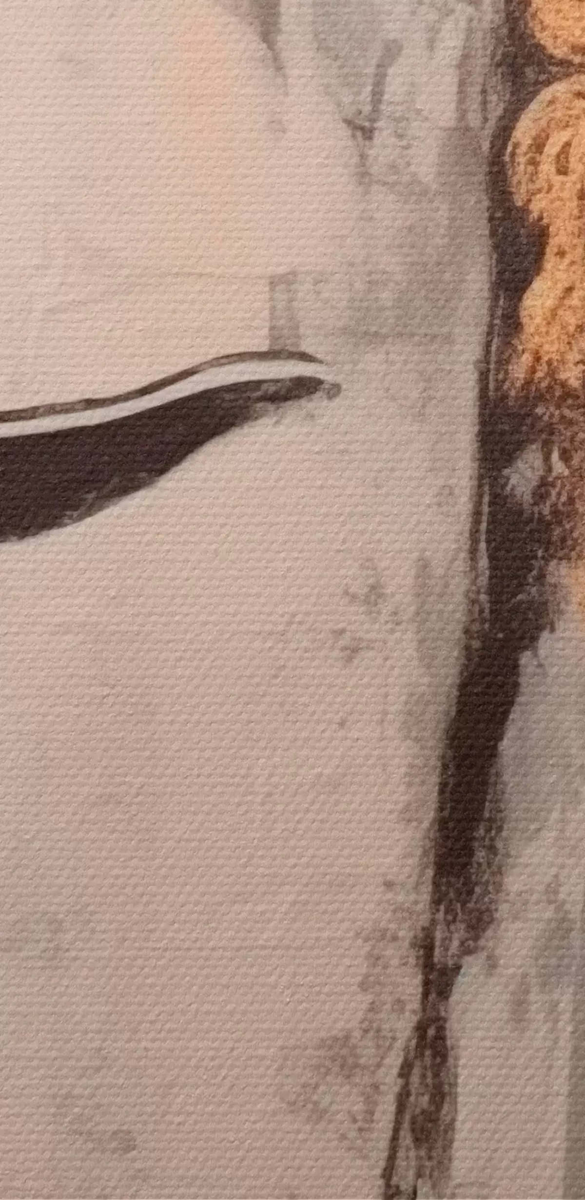 Ahhoz, hogy a vásznat a feszítőrúdra feszítsük anélkül, hogy a kép megsérülne, tükrözött képet használunk.