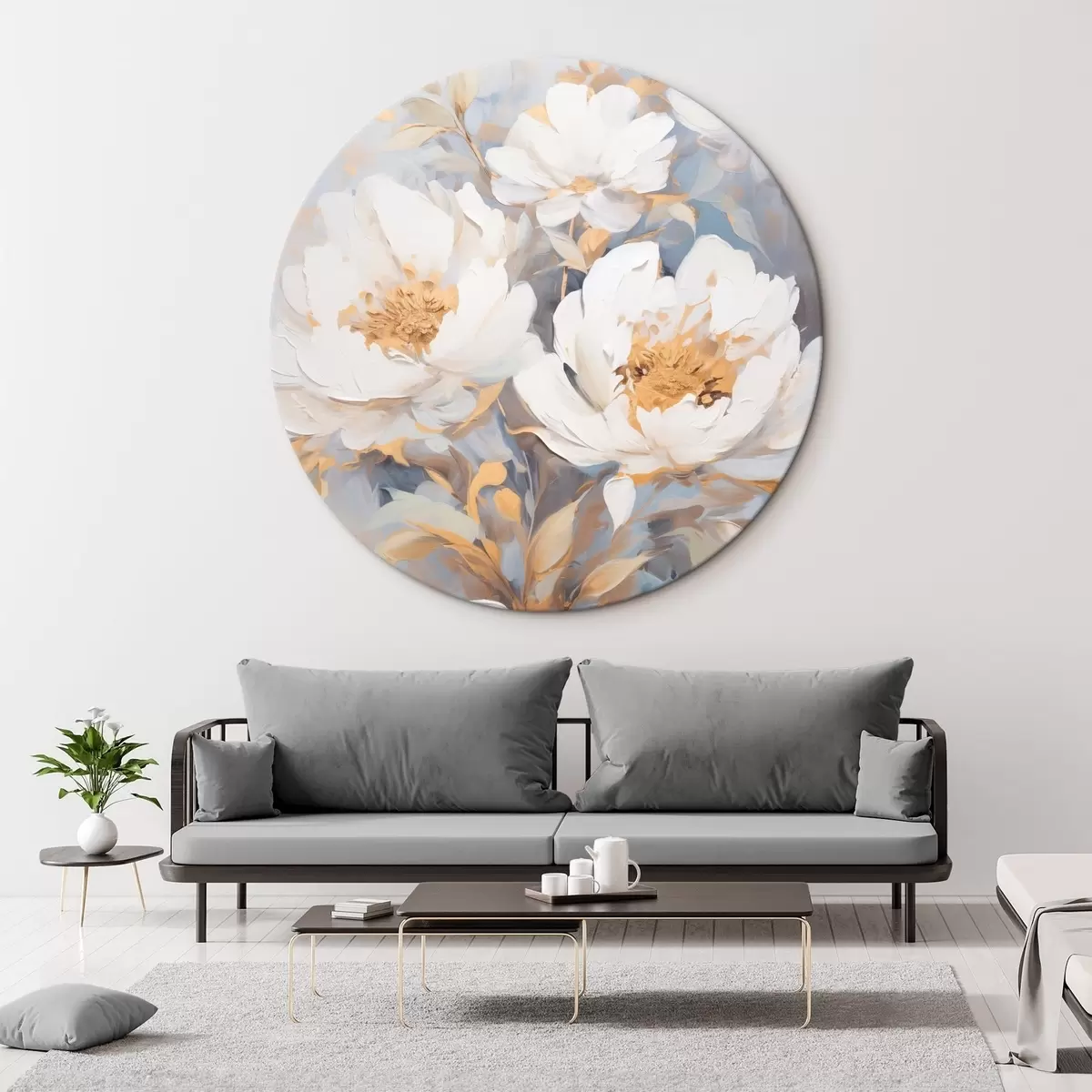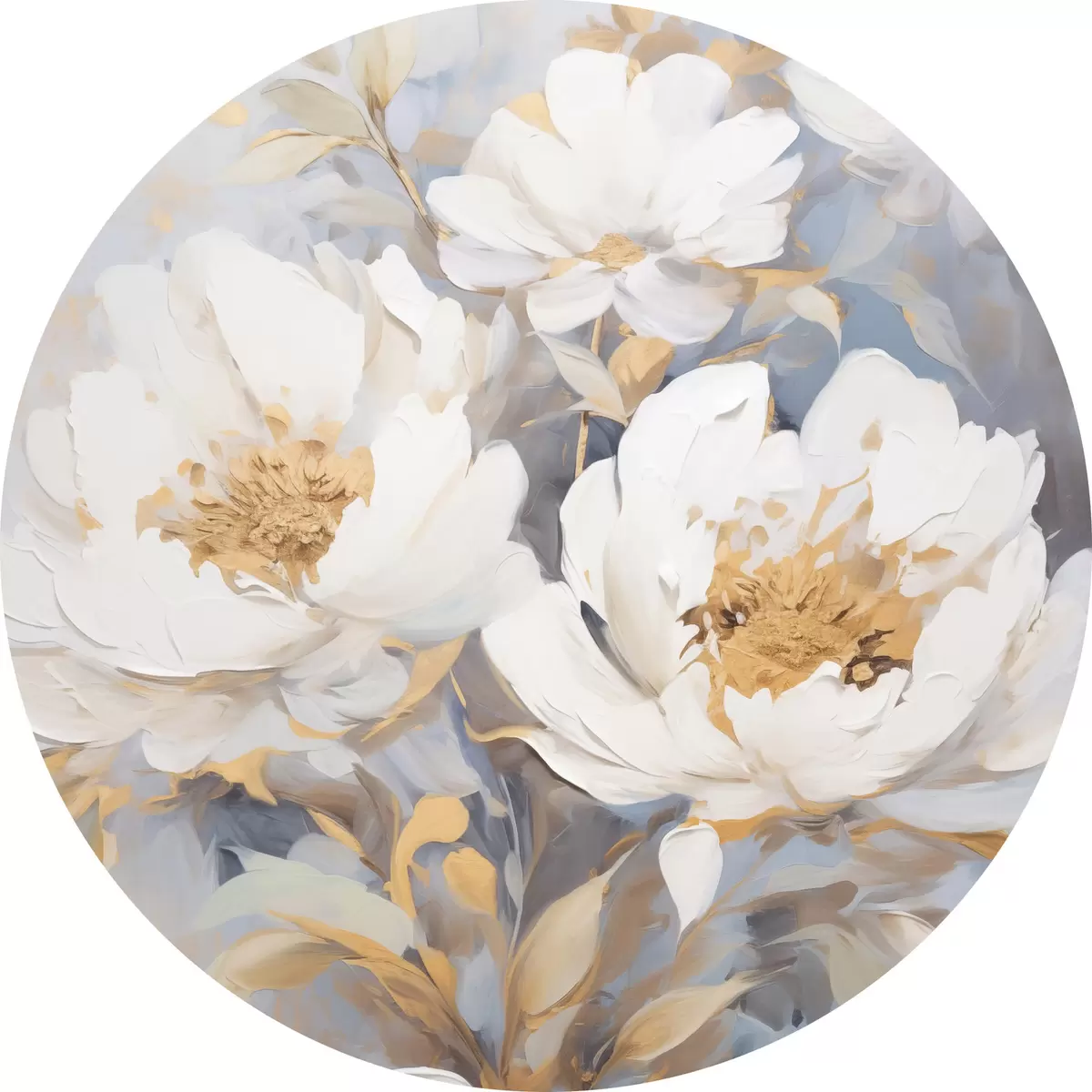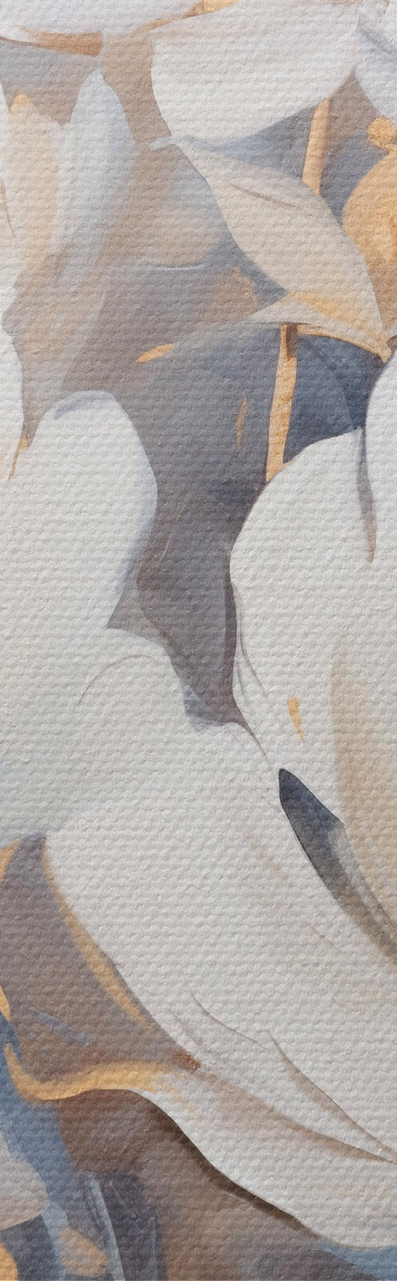 Kép Fehér pünkösdi rózsák kék közepekkel és levelekkel, lágy ecsetvonások, világoskék háttér, virágkompozíció Nr r46270