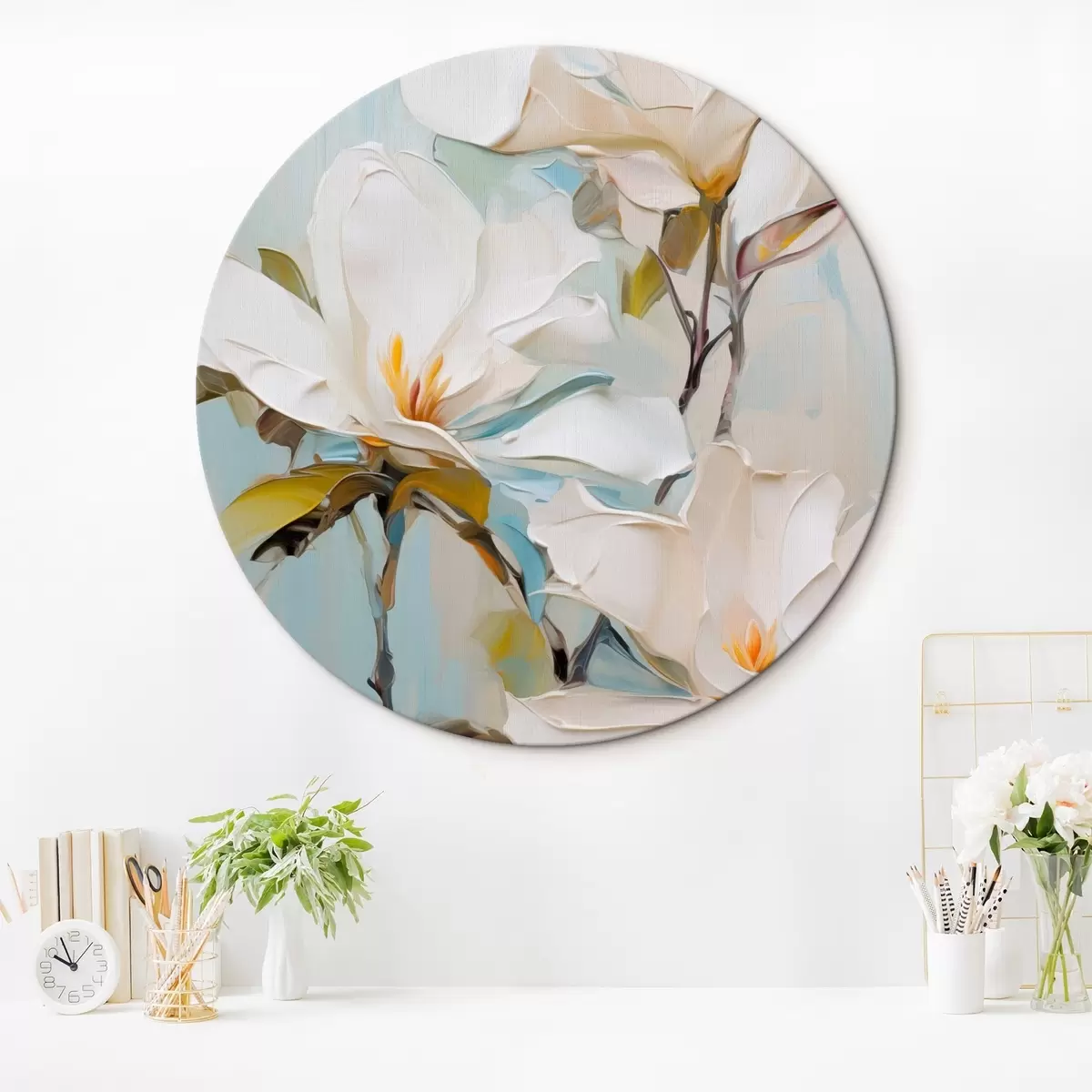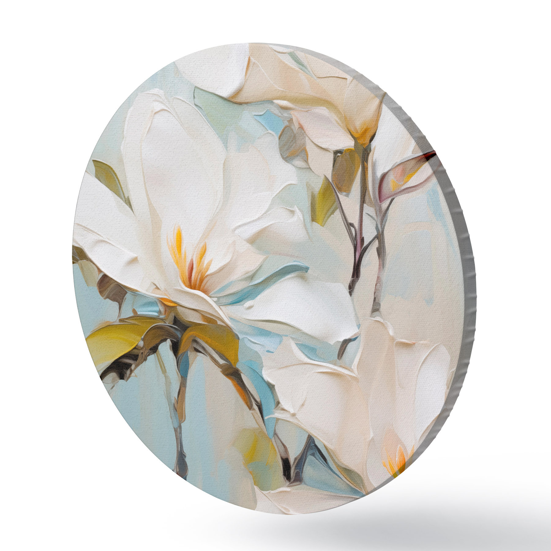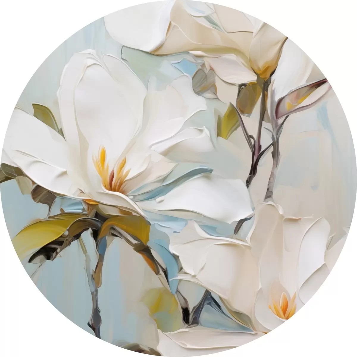 Kép Fehér magnólia virágok, világoskék háttér lágy ecsetvonásokkal, olajfestmény stílus, impasto textúra Nr r46276