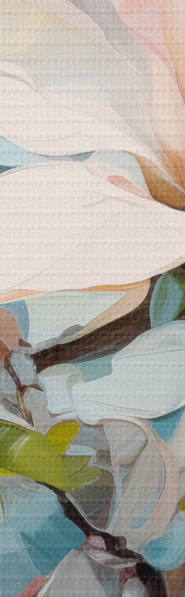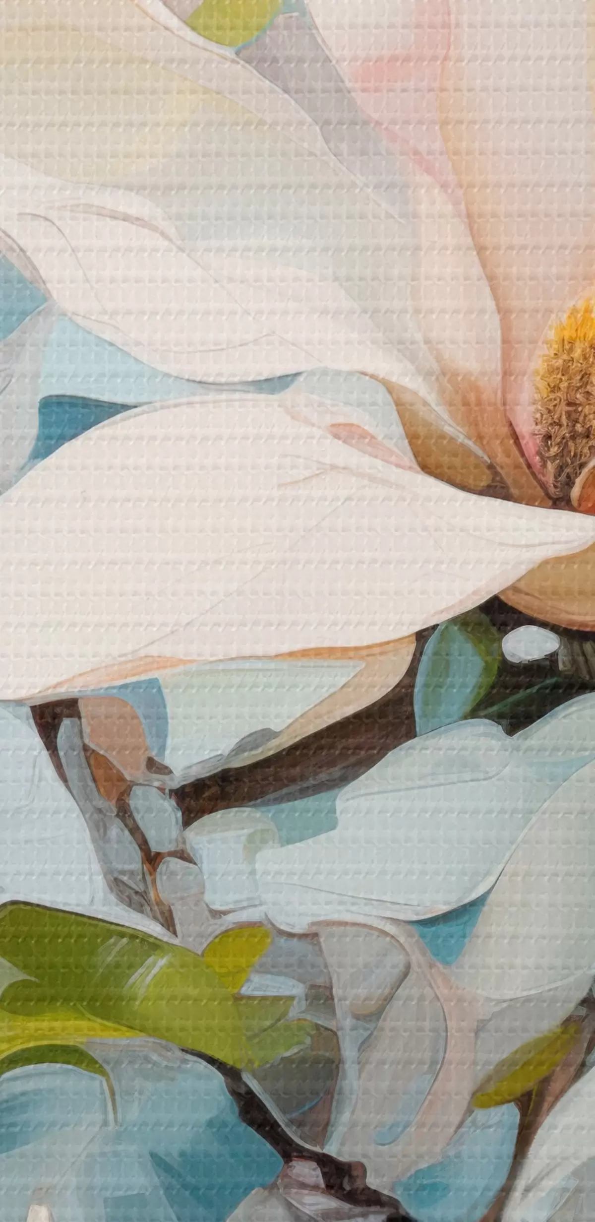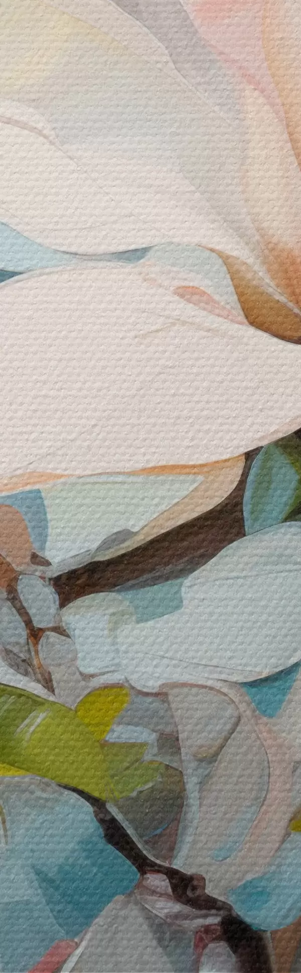 Kép Fehér magnólia virágok, világoskék háttér lágy ecsetvonásokkal, olajfestmény stílus, impasto textúra Nr r46277