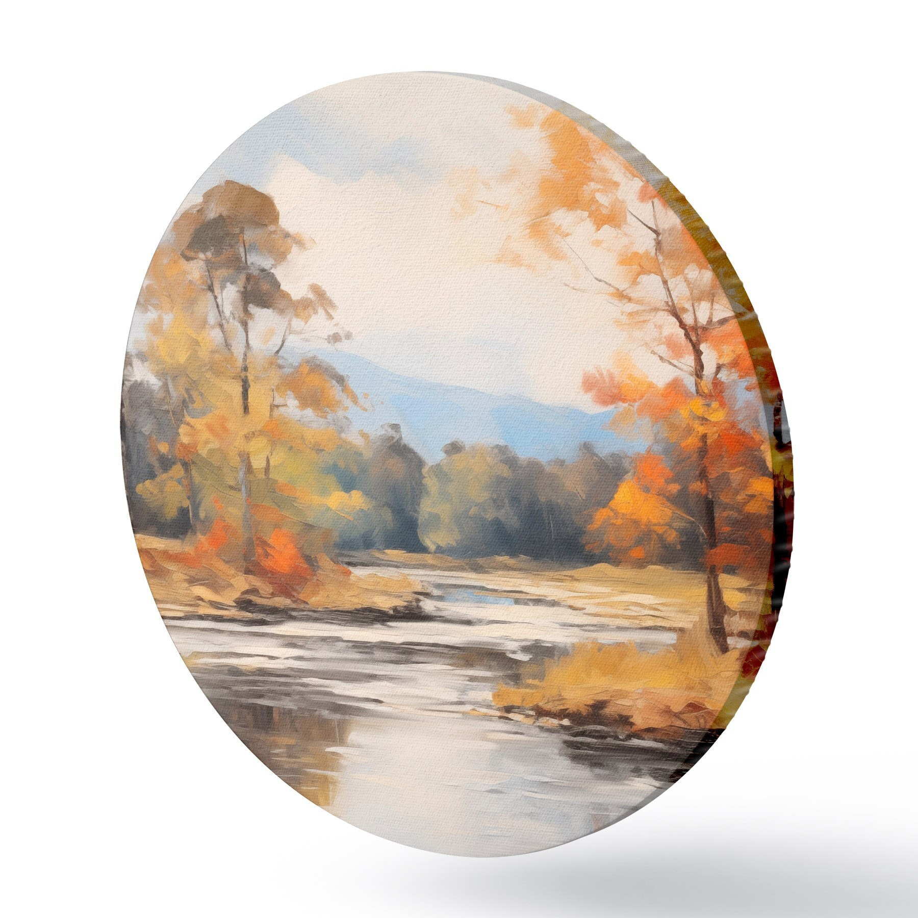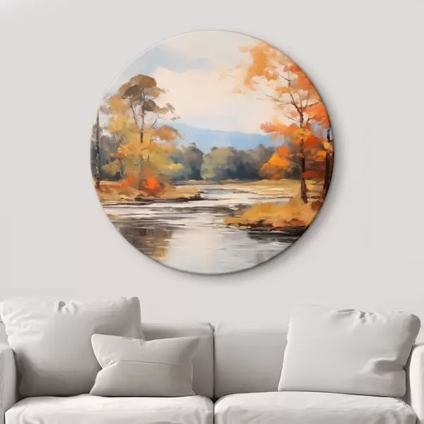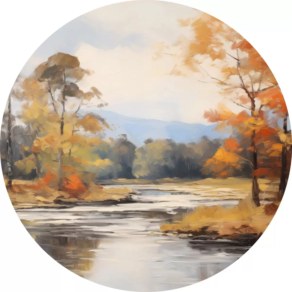 Kép Tájkép őszi erdővel, folyóval, sárga és narancssárga fákkal, festészeti stílusban Nr r46281