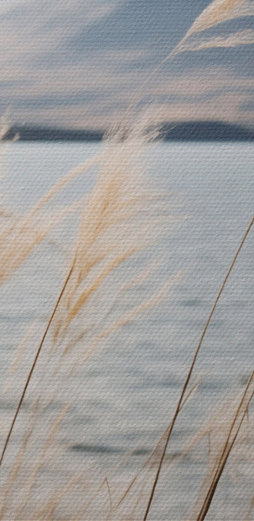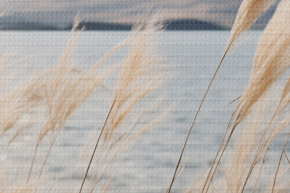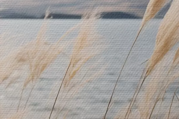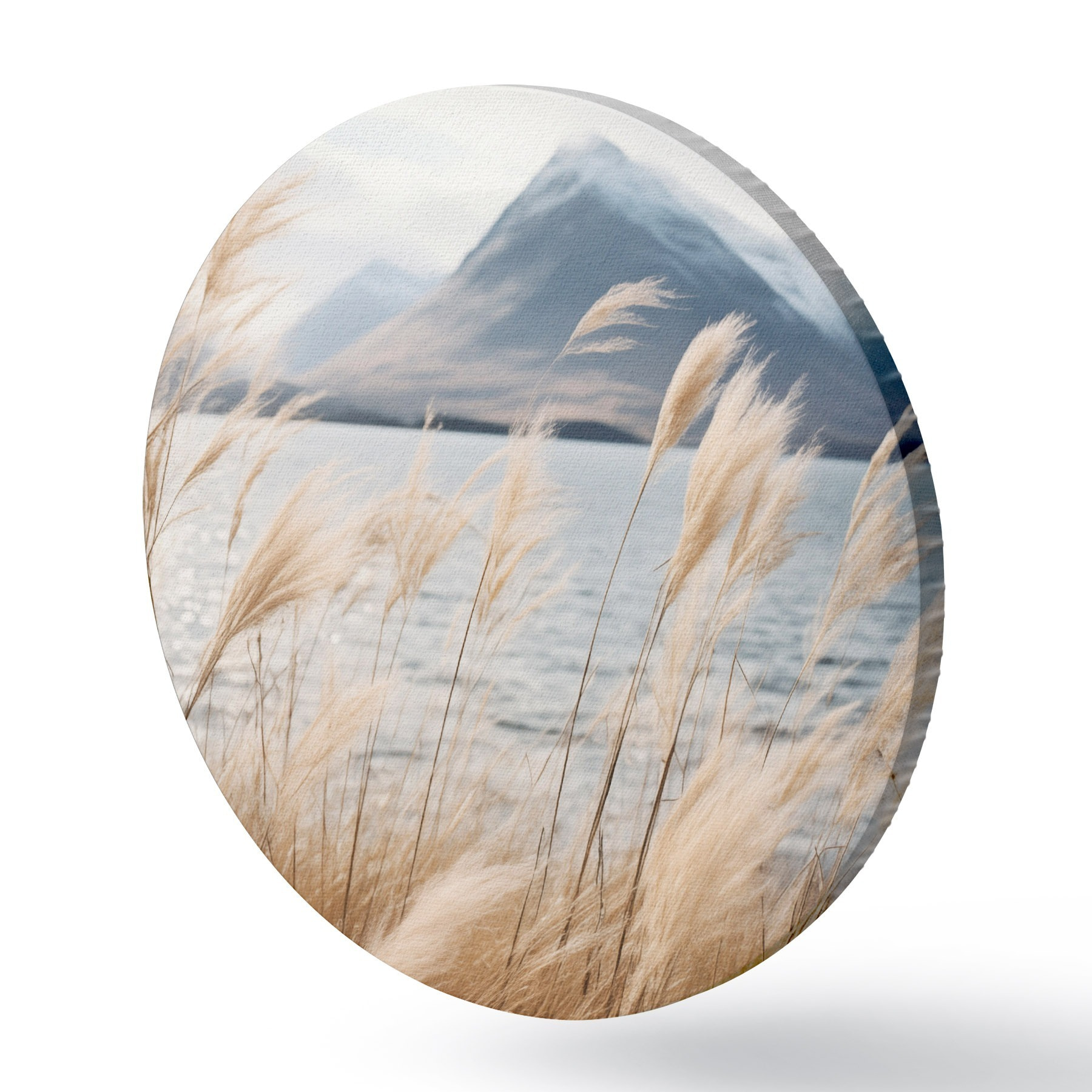 Kép Pampas fű, háttérben tóval és hegyekkel, lágy megvilágítás, tompított színek, naturalisztikus stílus Nr r46283
