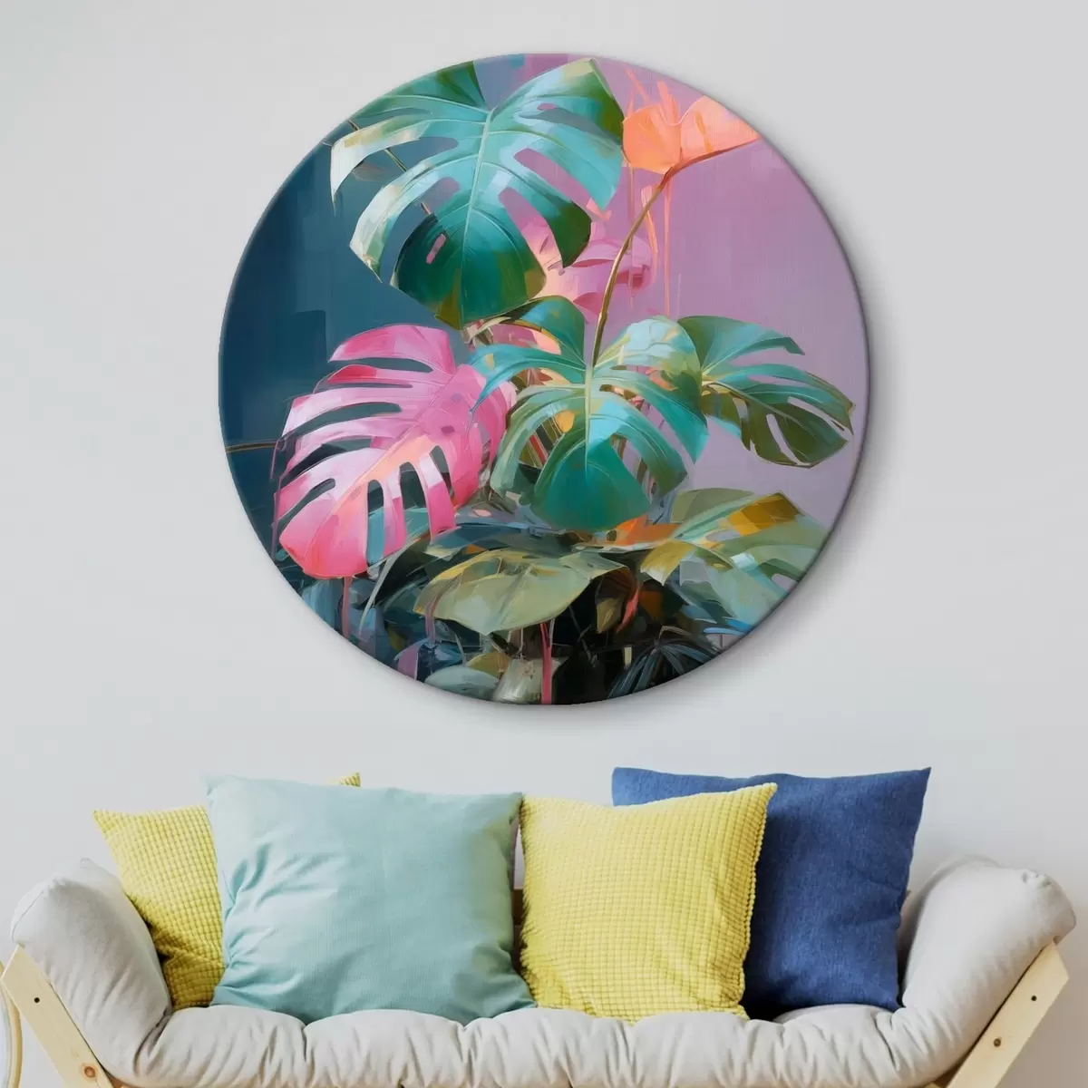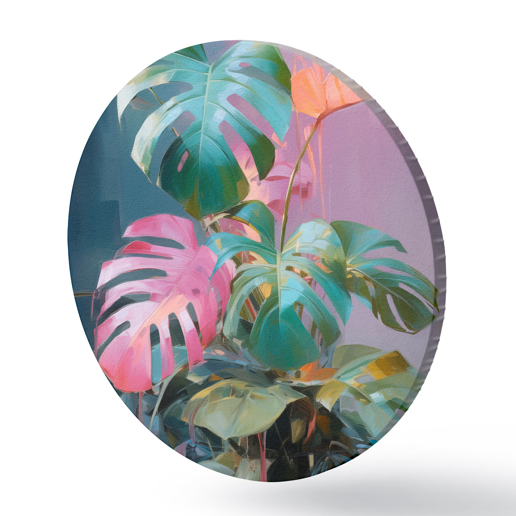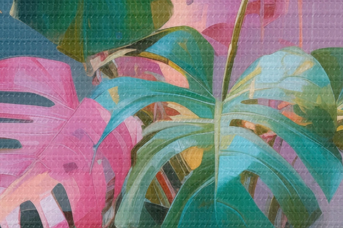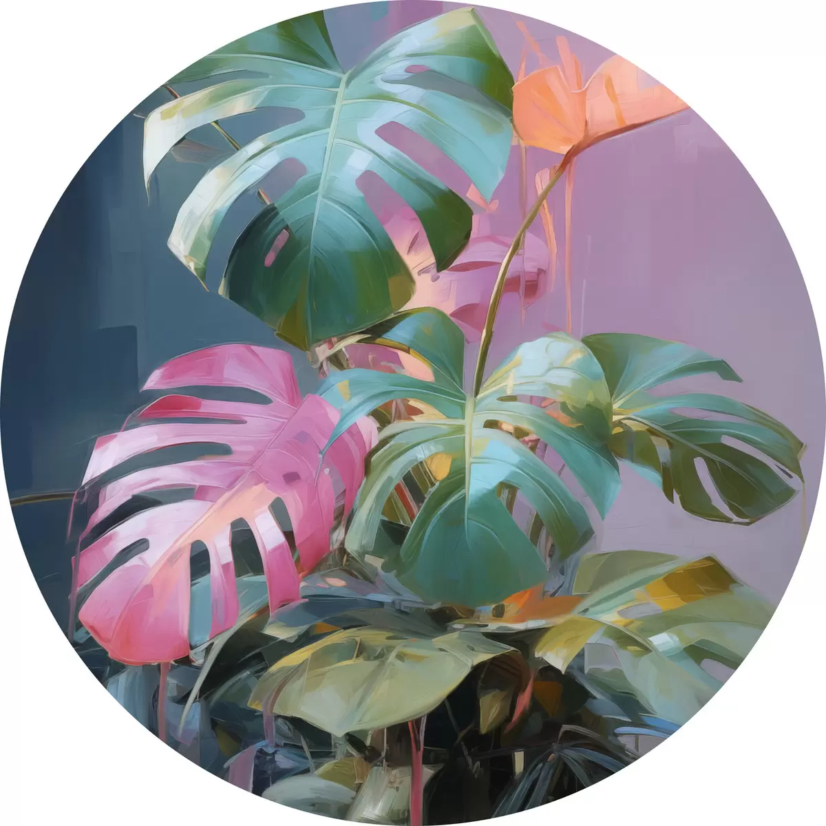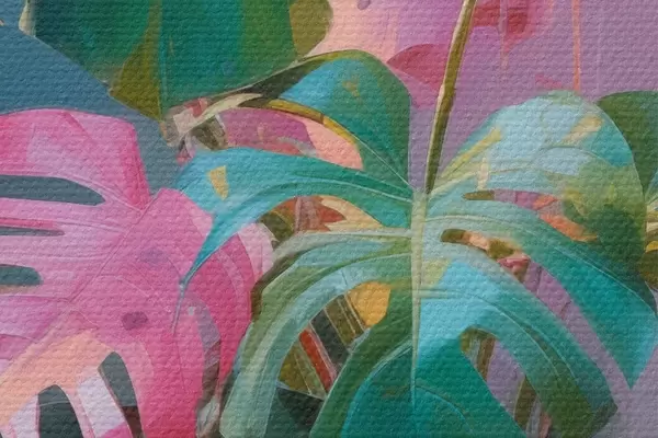 Kép Absztrakt monstera növény rózsaszín és zöld levelekkel, élénk színekkel, homályos háttér előtt Nr r46287