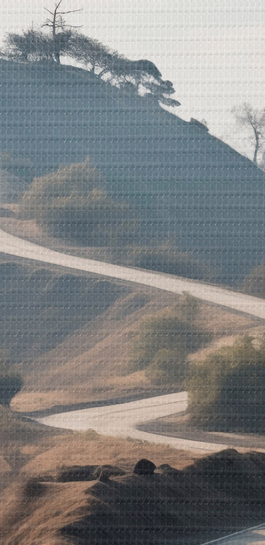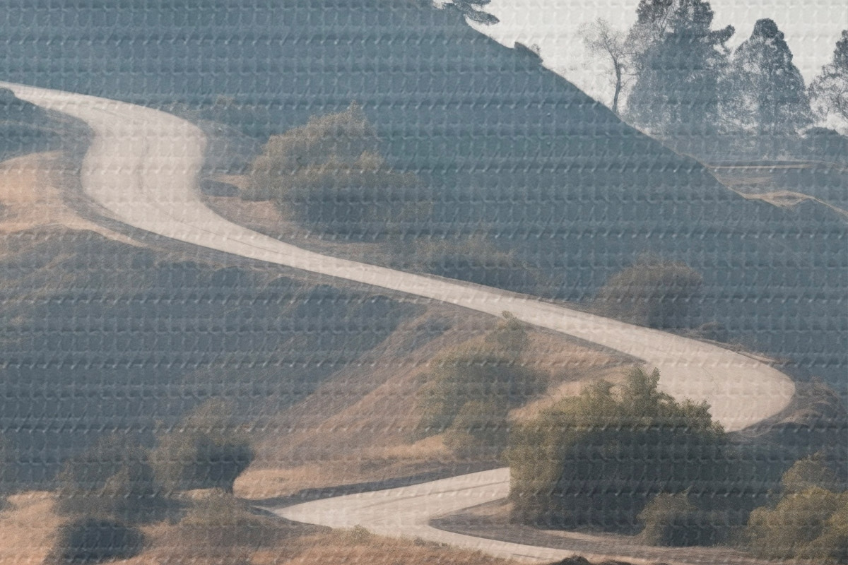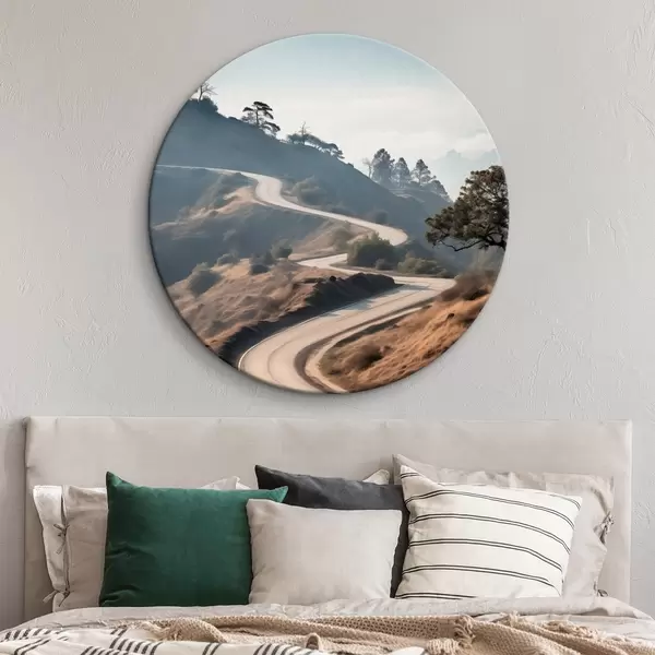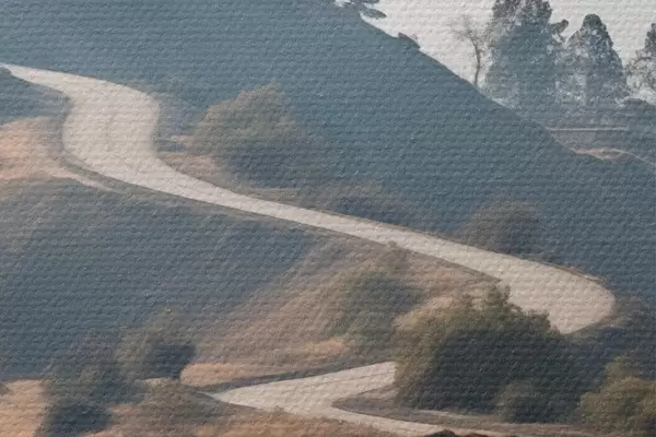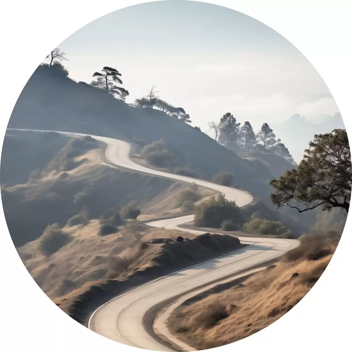 Kép Kanyargós út dombos tájban, száraz fűvel, tiszta égbolttal és a távolban látható hegyekkel. Nr r46289