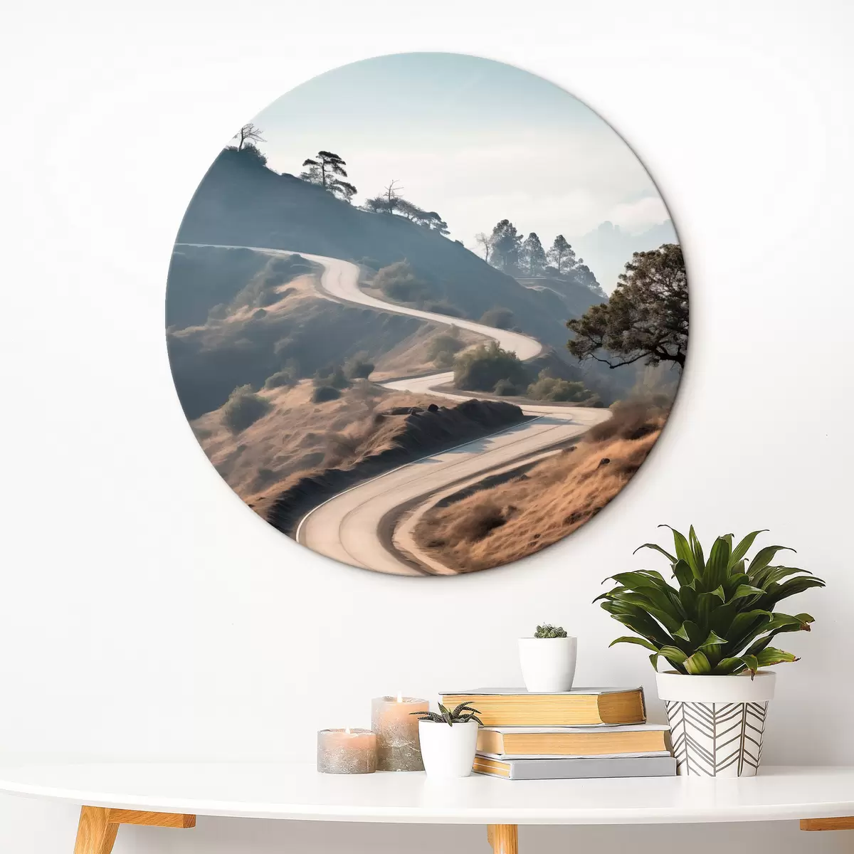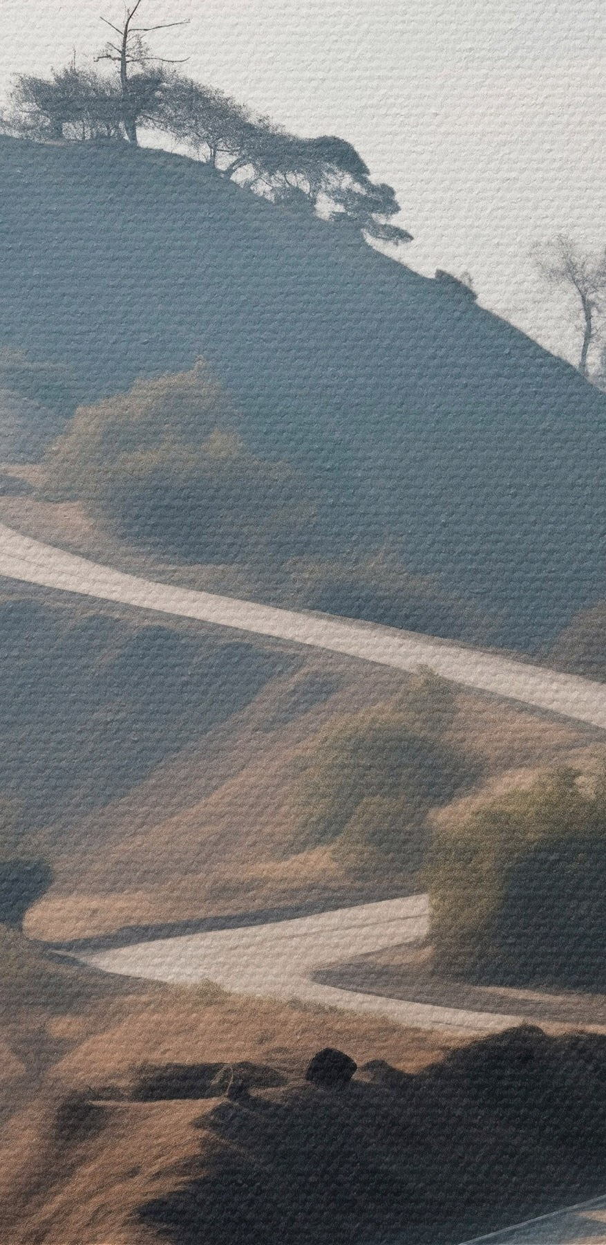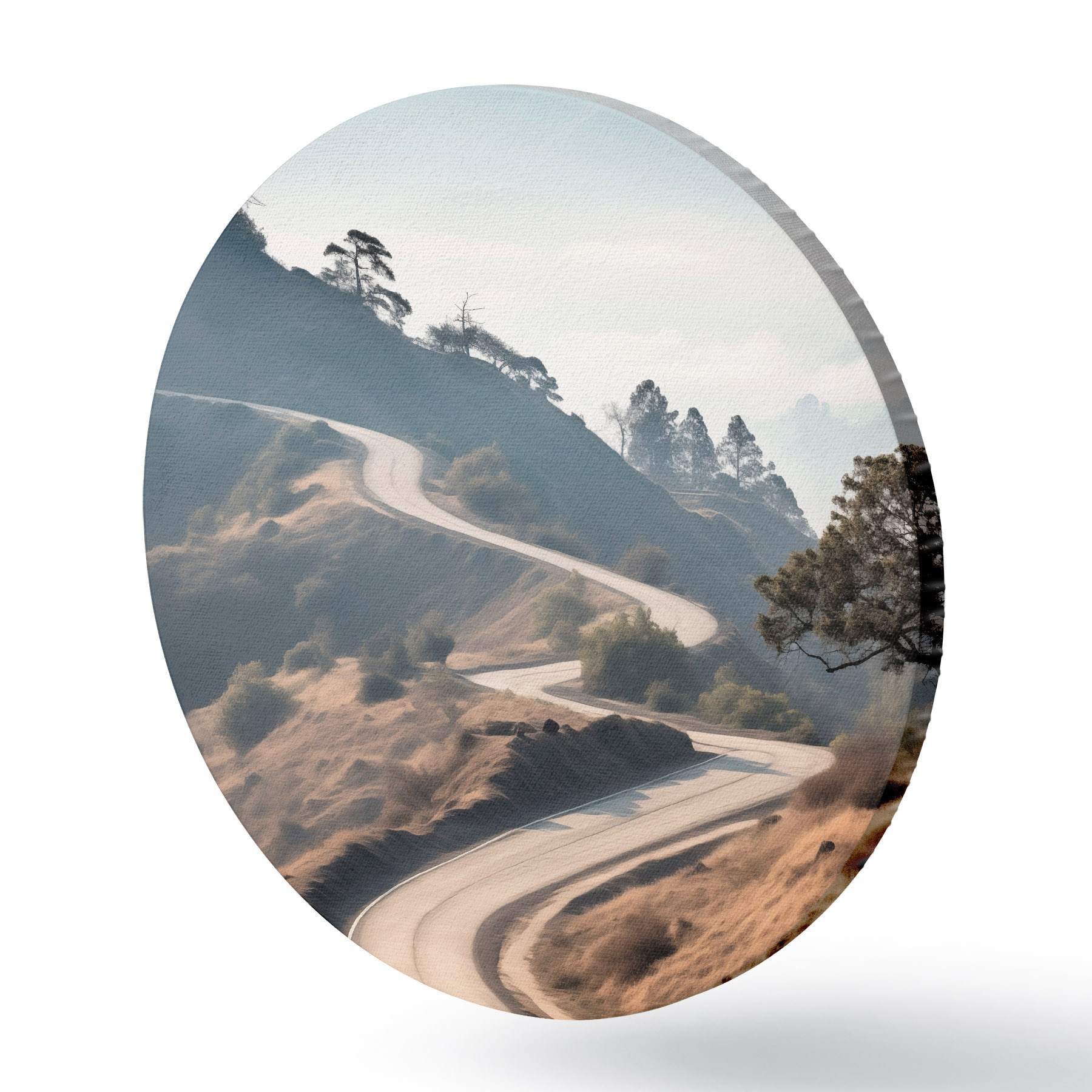Kép Kanyargós út dombos tájban, száraz fűvel, tiszta égbolttal és a távolban látható hegyekkel. Nr r46289
