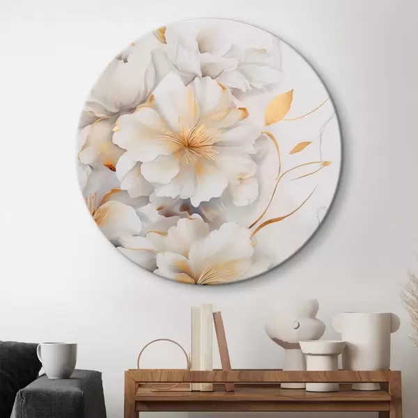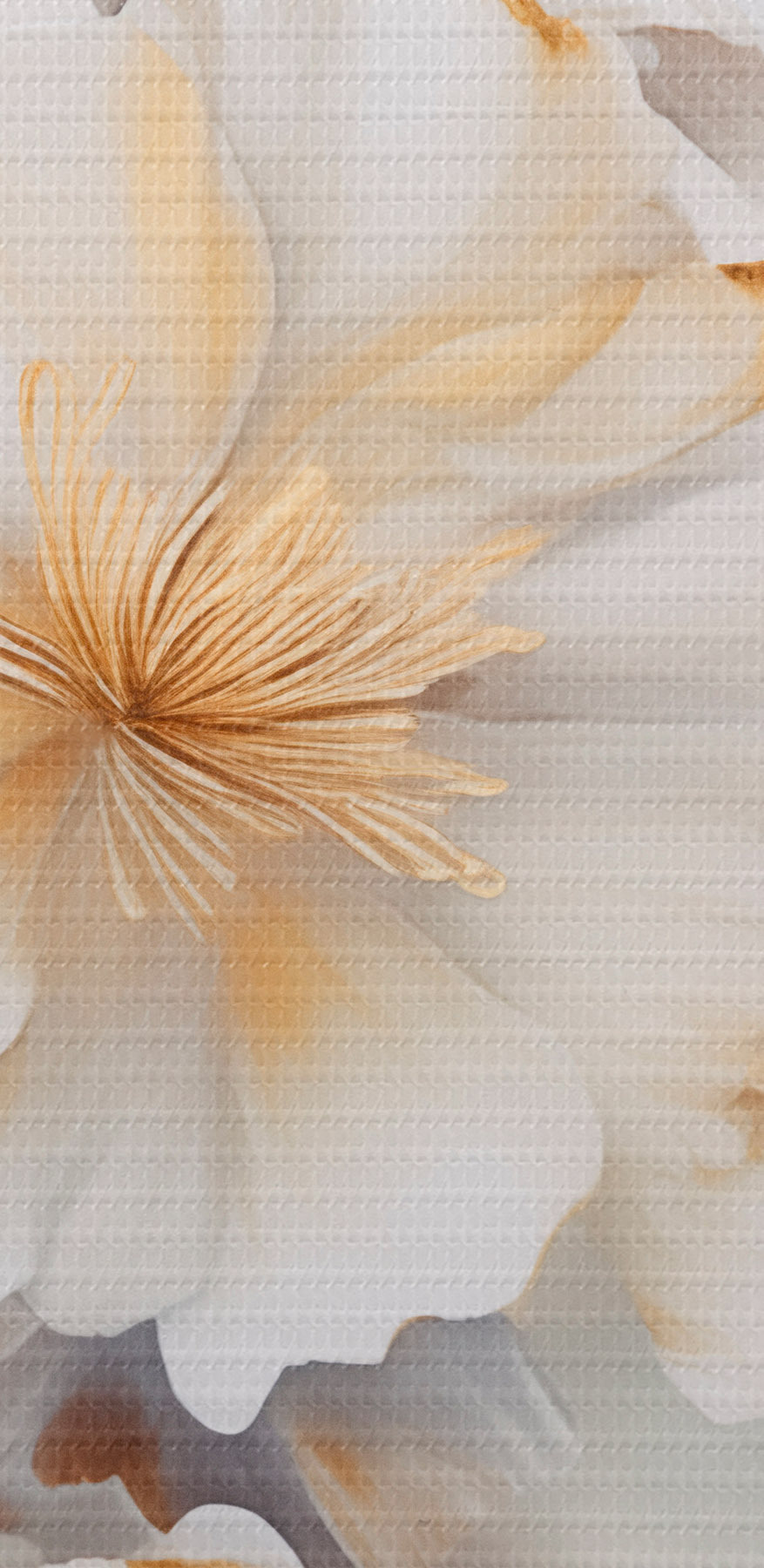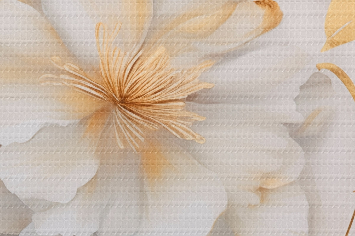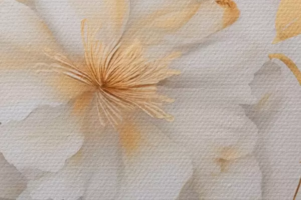 Kép Fehér virágok sárga részletekkel, finom árnyékokkal ellátott szirmok, finom márványhatású világos háttér Nr r46292