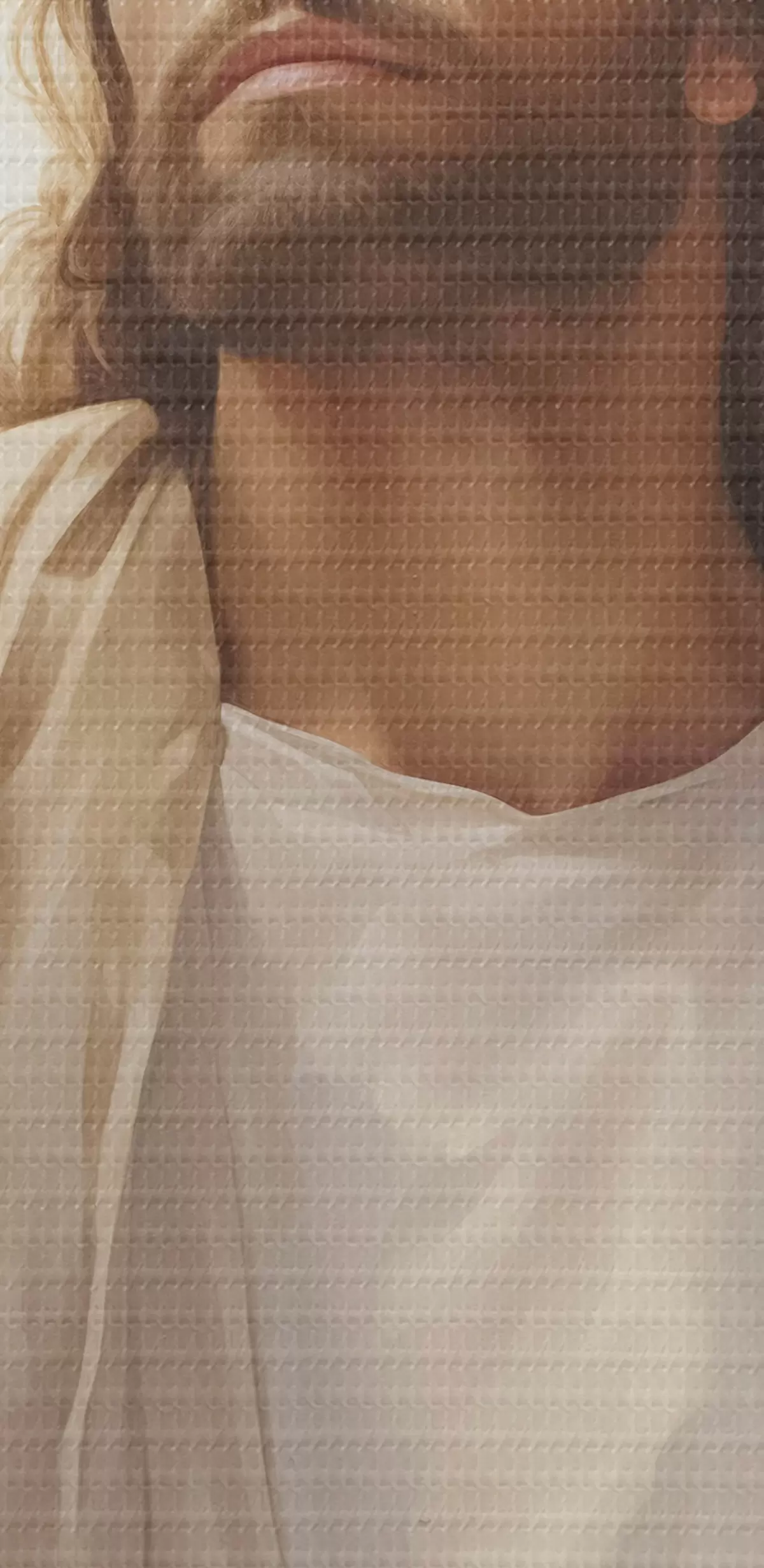 Ahhoz, hogy a vásznat a feszítőrúdra feszítsük anélkül, hogy a kép megsérülne, tükrözött képet használunk.