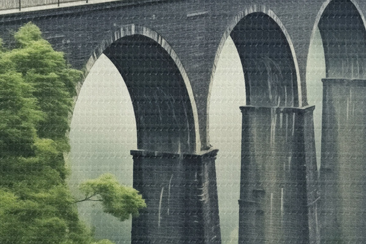 Kép Kőviadukt a ködös, erdős völgy felett Nr r46483