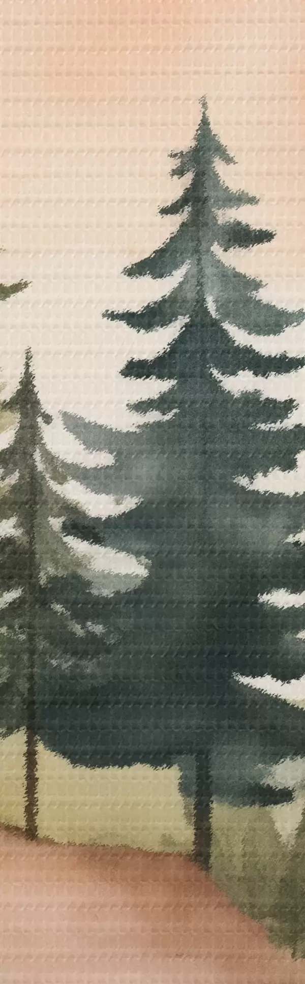 Kép Akvarell fenyők ködös szigeten, lágy barack színű égbolton Nr r46505