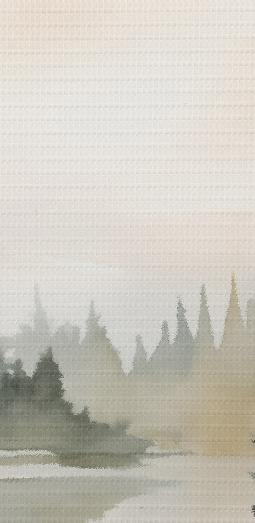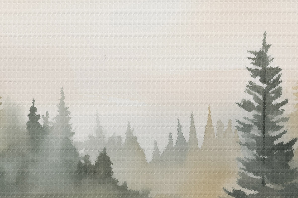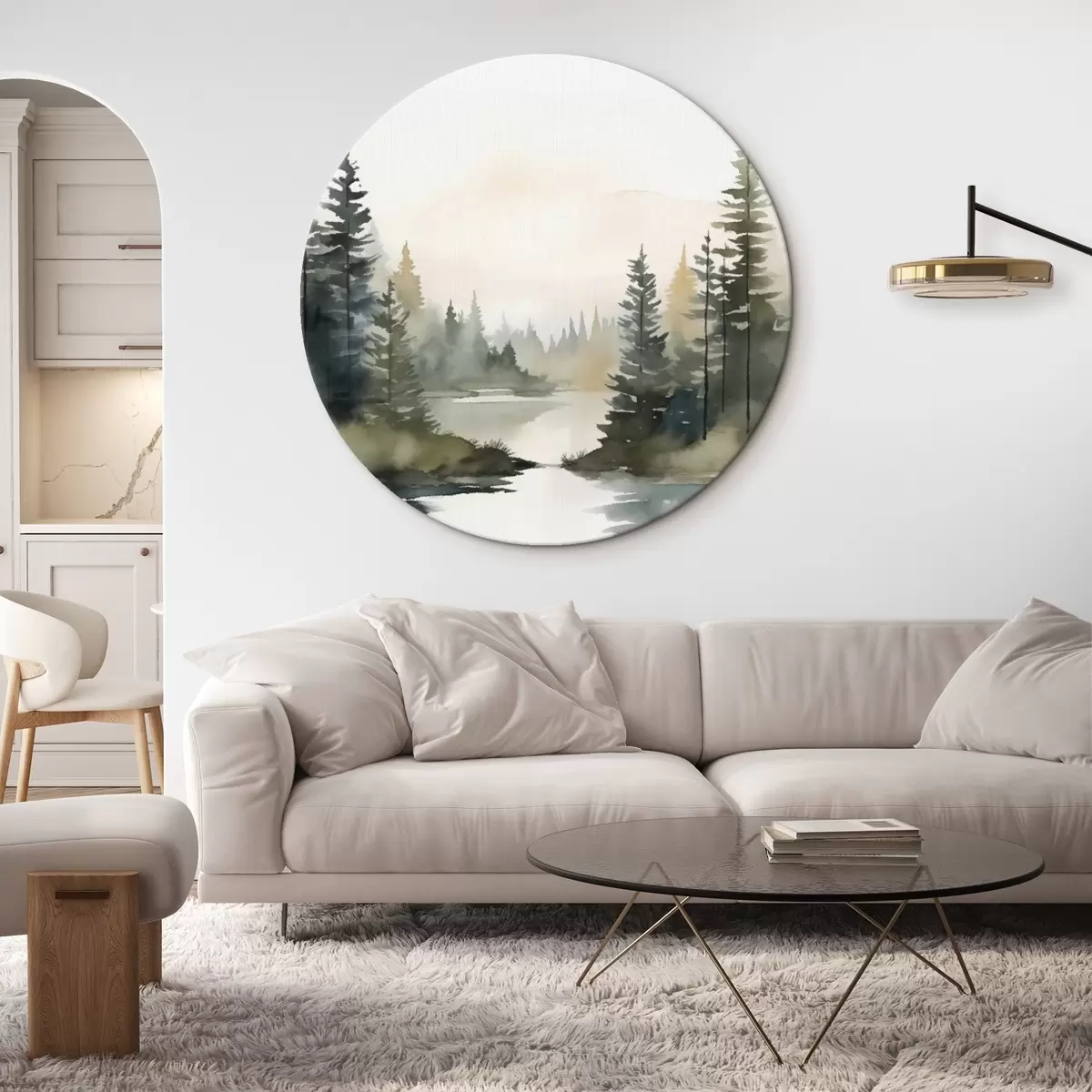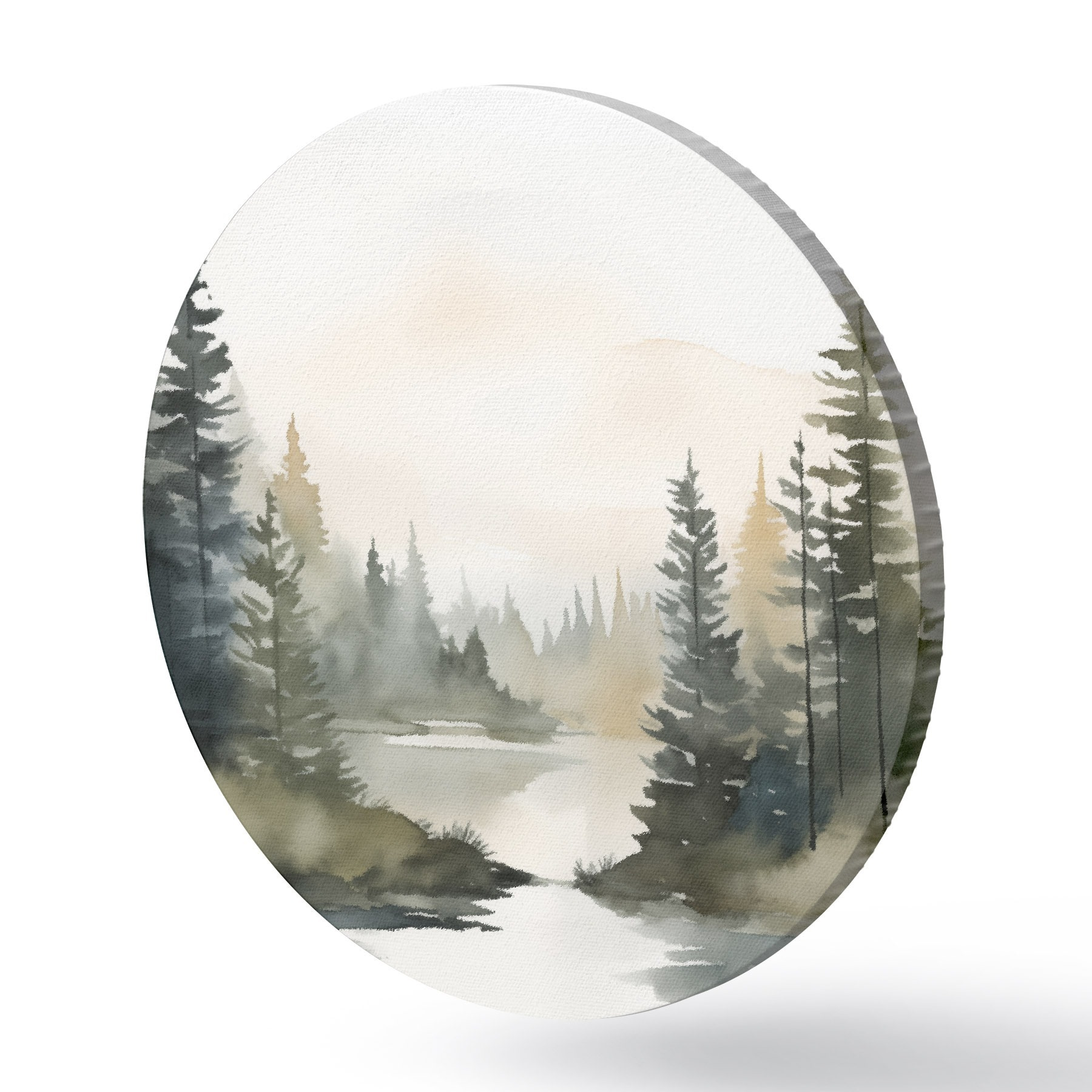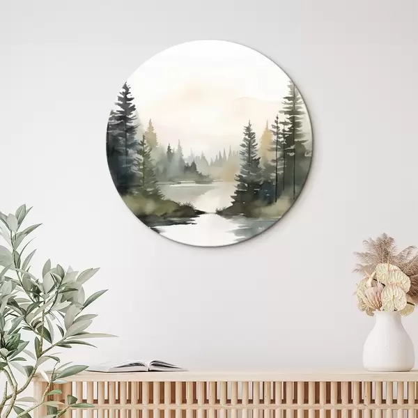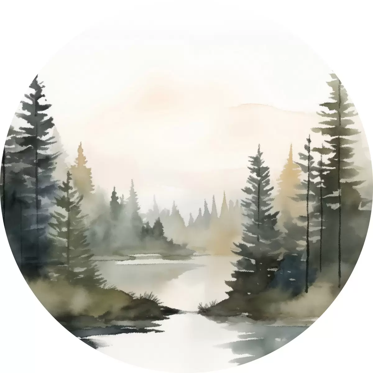 Kép Ködös tűlevelű erdő a nyugodt folyó felett, akvarell stílusban Nr r46507