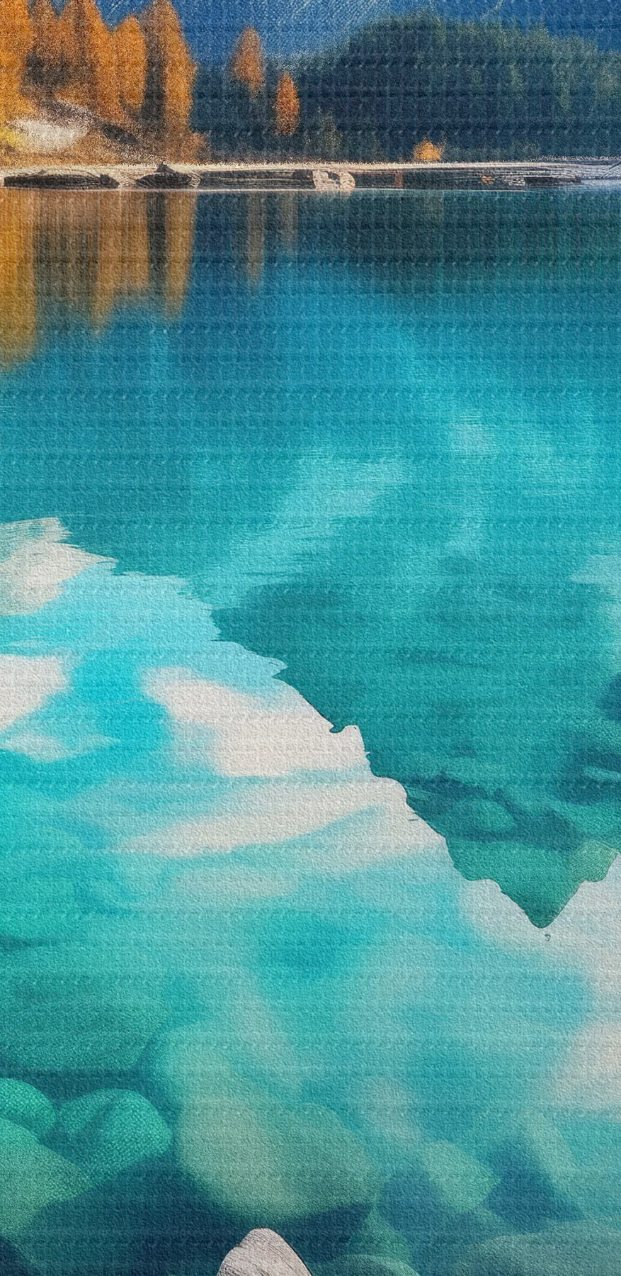 Kép Törpefenyőkkel szegélyezett, türkizkék vizű hegyi tó Nr r46517