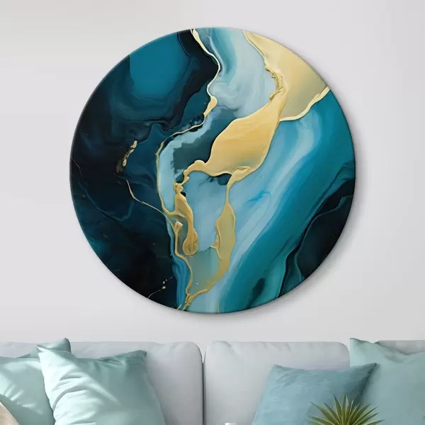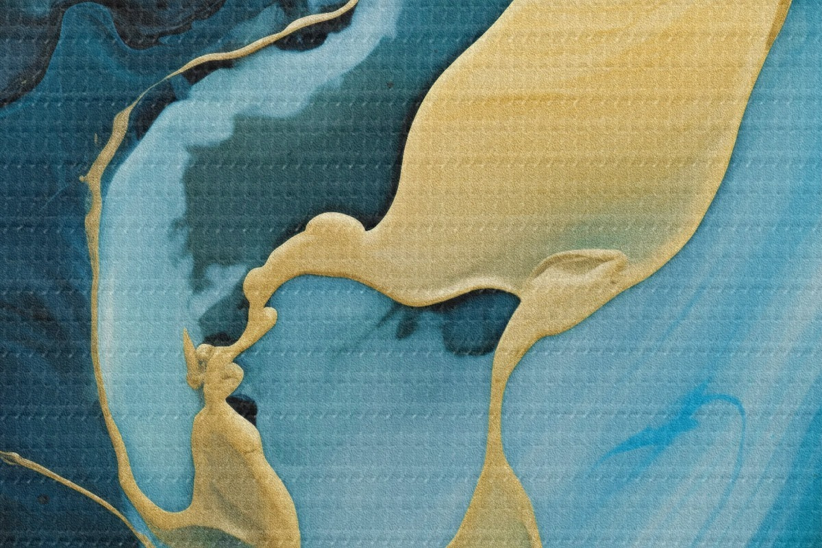 Kép Kékes-zöld absztrakt, okker színű csíkkal Nr r46530
