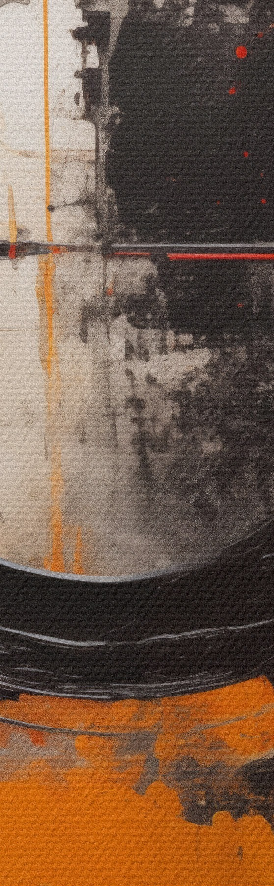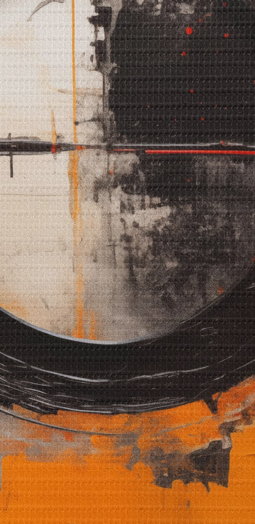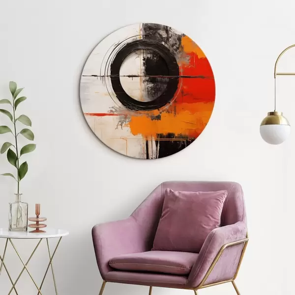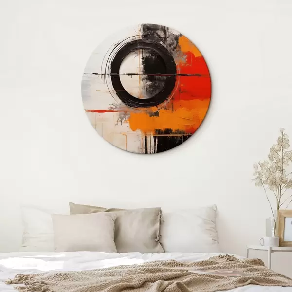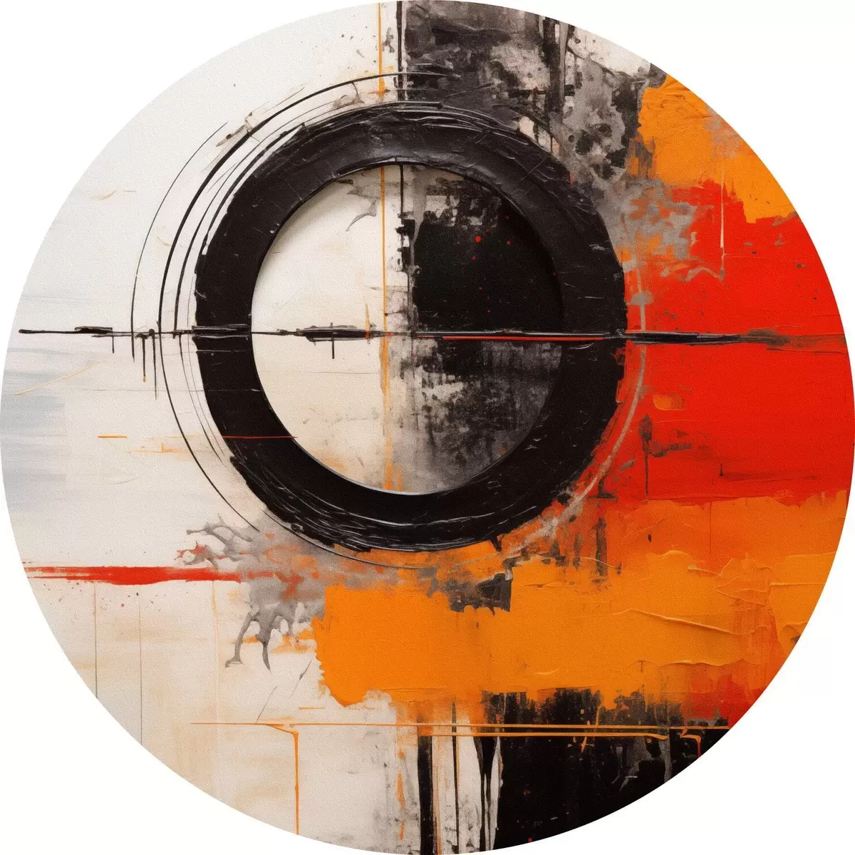 Kép Fekete kör fehér alapon, narancssárga vonások és fröccsenések Nr r46549