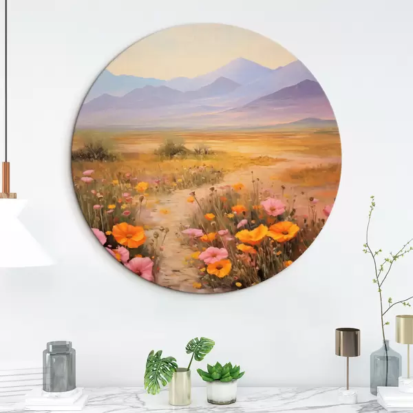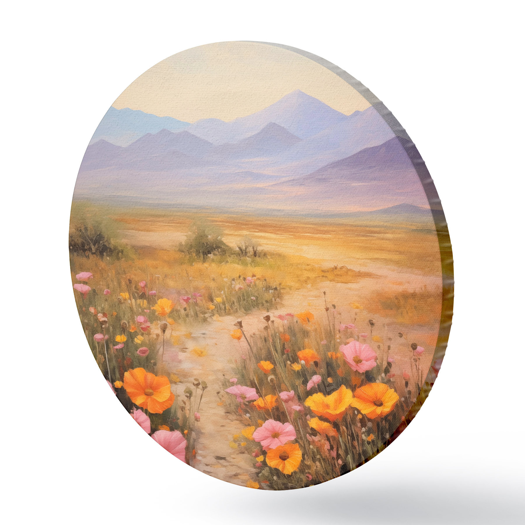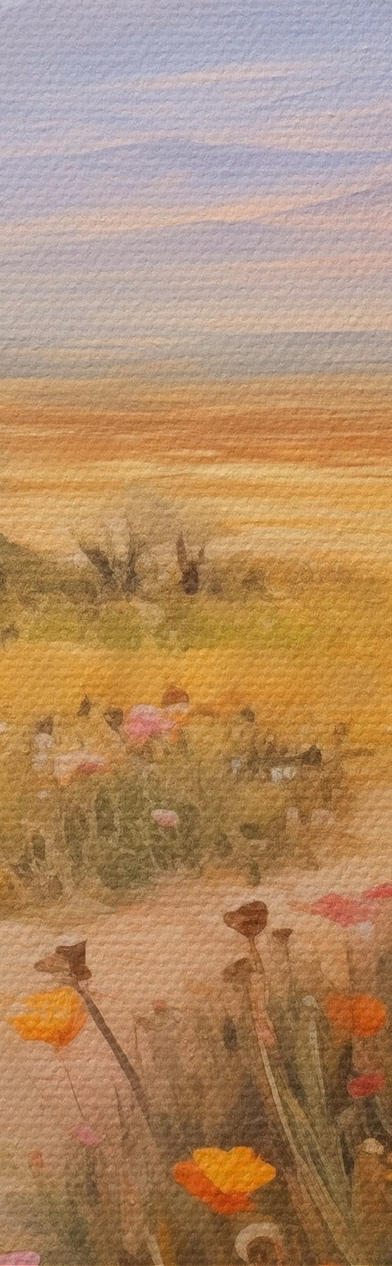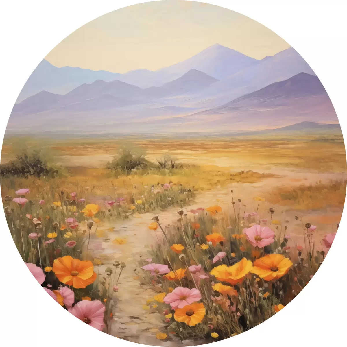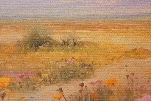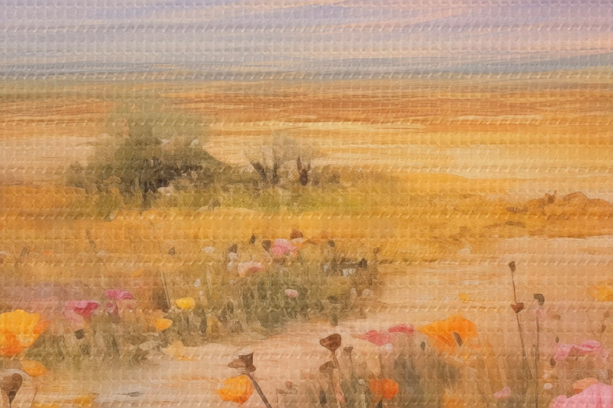 Kép Tájkép, színes virágokkal teli mező, háttérben hegyekkel, lágy, pasztell színekkel Nr r46686